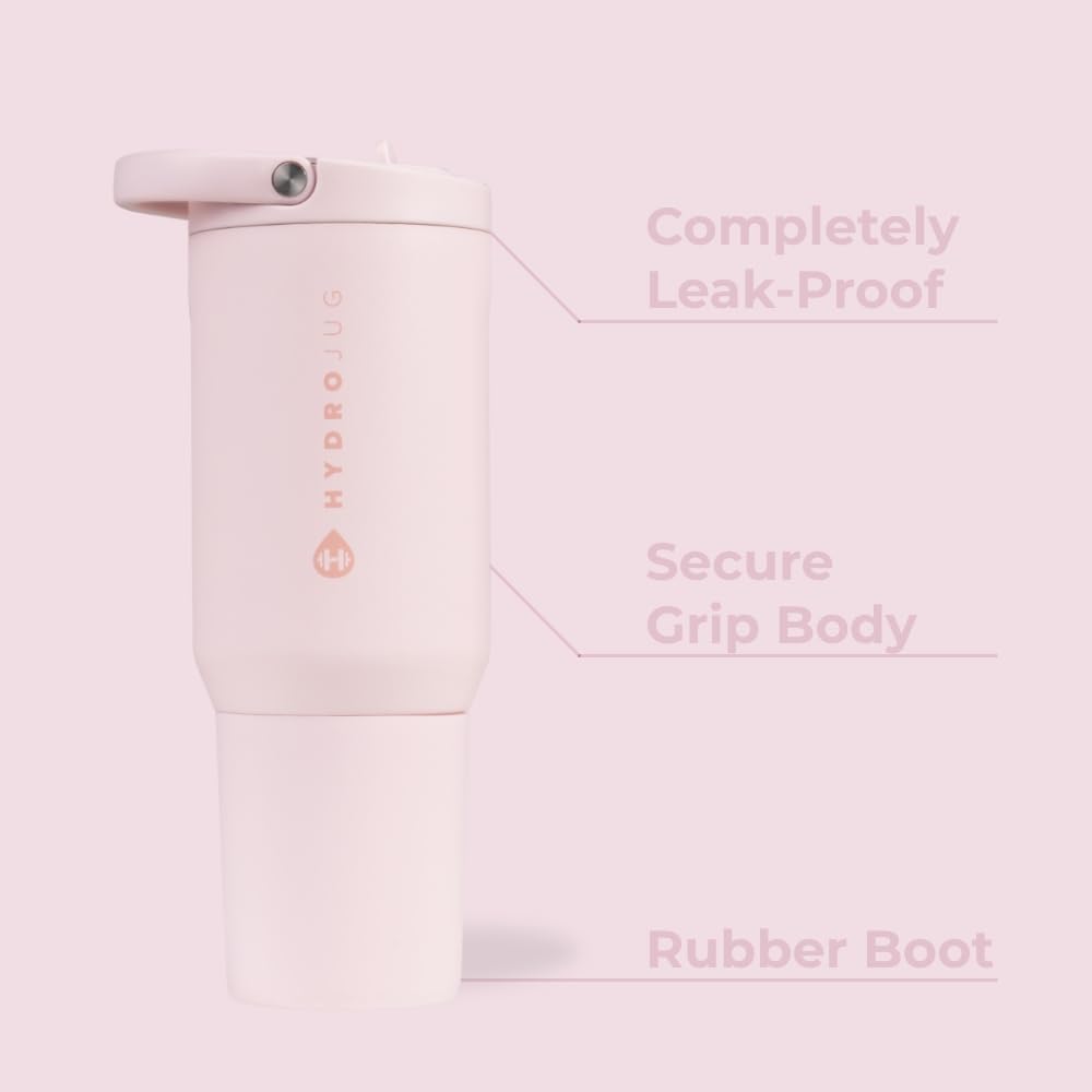 HydroJug Sport - Stainless Steel Tumbler with Straw, Vacuum Insulated, 20oz Leakproof Water Bottle, Ergonomic Design, Reusable, Dishwasher Safe, Rubber Base, Durable for Gym or Outdoors, Pink Sand