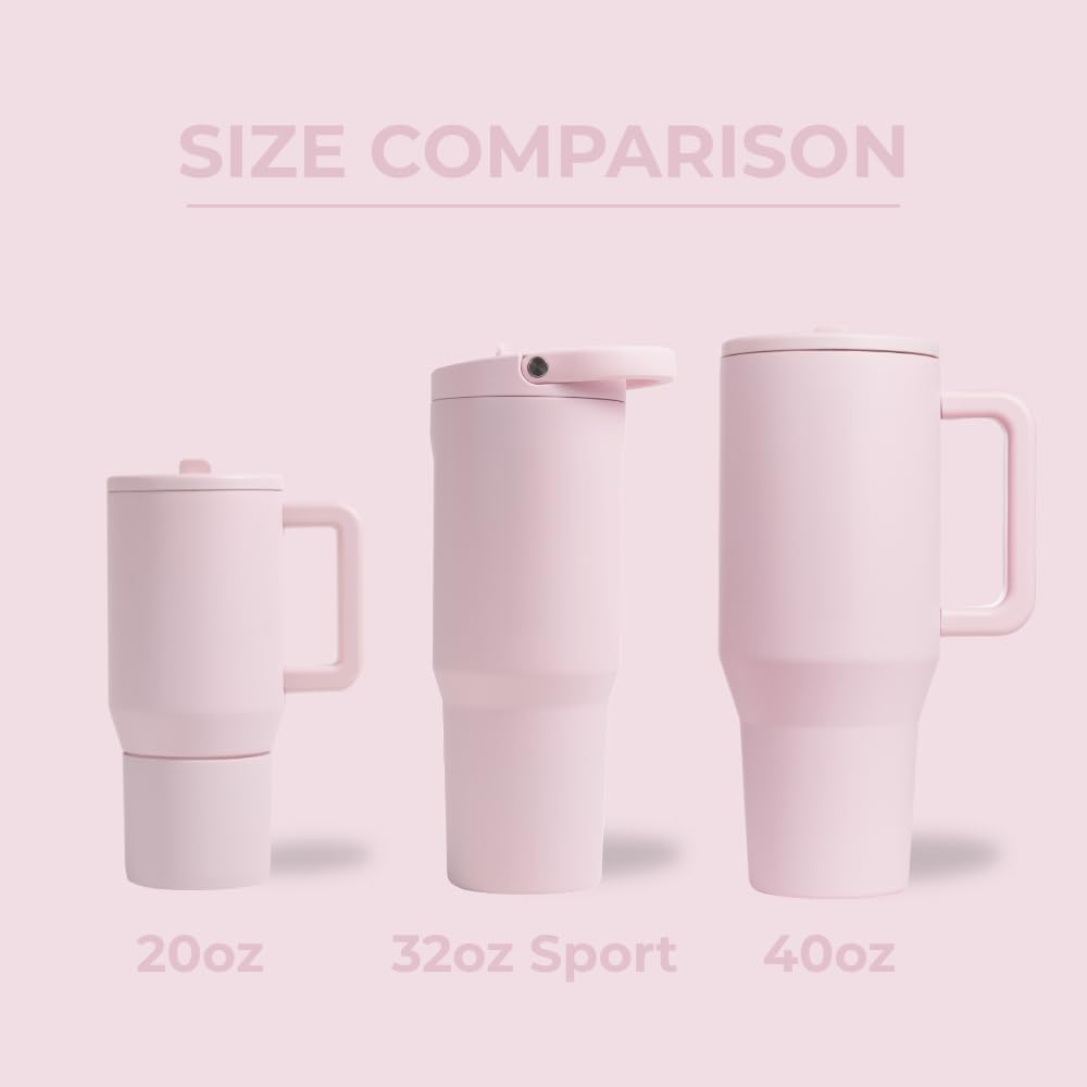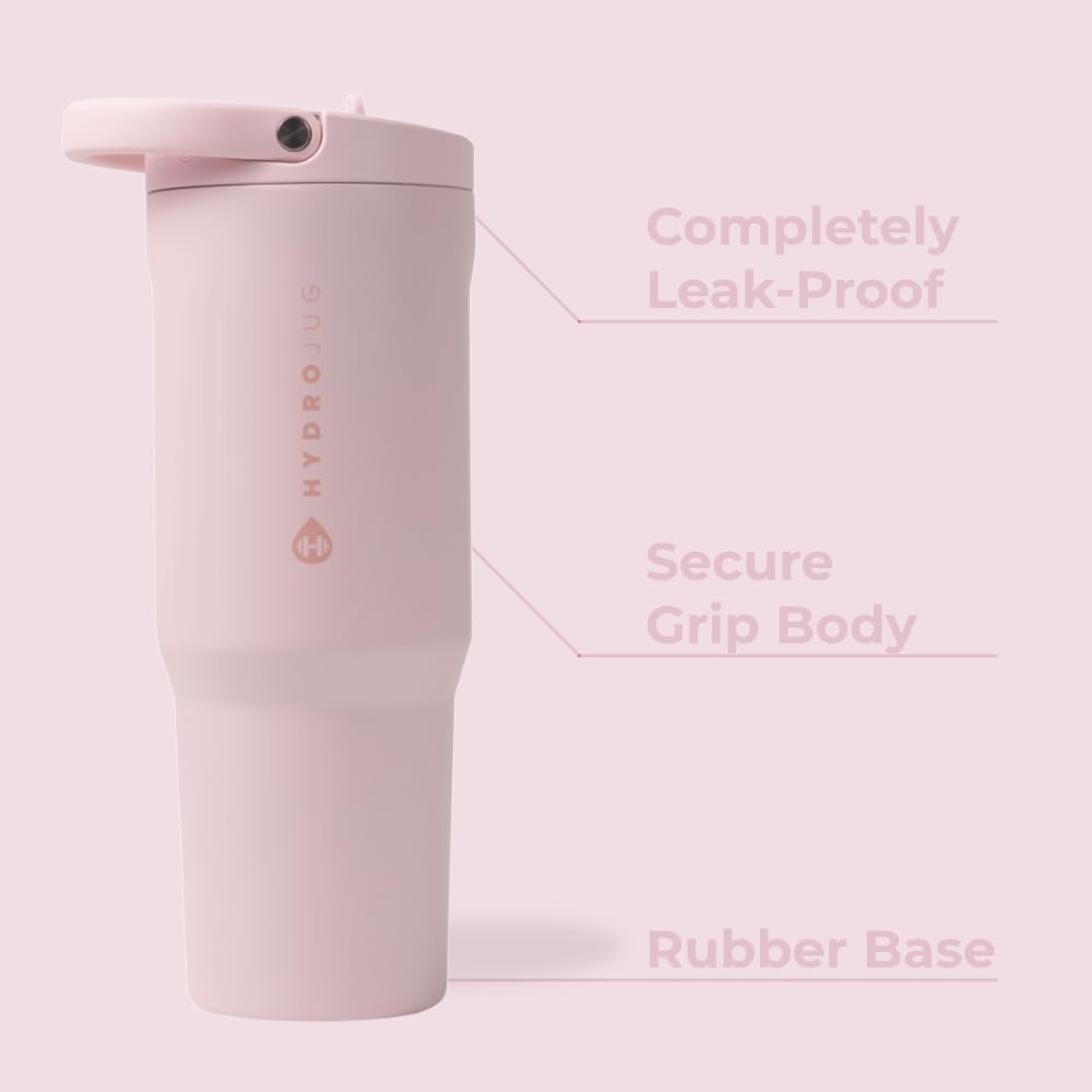 HydroJug Sport - Stainless Steel Tumbler with Straw, Vacuum Insulated, 32oz Leakproof Water Bottle, Ergonomic Design, Reusable, Dishwasher Safe, Rubber Base, Durable for Gym or Outdoors, Pink Sand