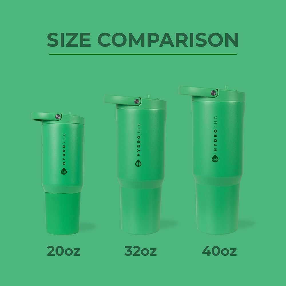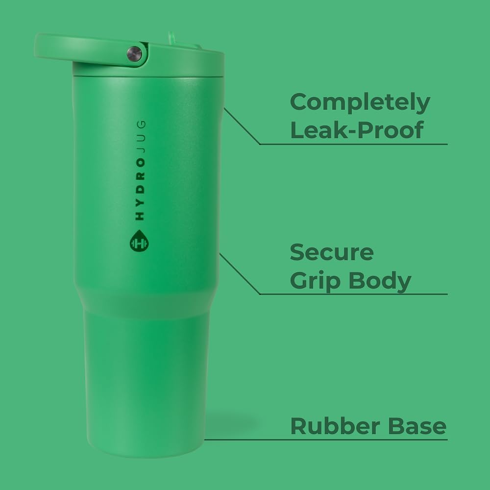 HydroJug Sport - Stainless Steel Tumbler with Straw, Vacuum Insulated, 40oz Leakproof Water Bottle, Ergonomic Design, Reusable, Dishwasher Safe, Rubber Base, Durable for Gym or Outdoors, Clover