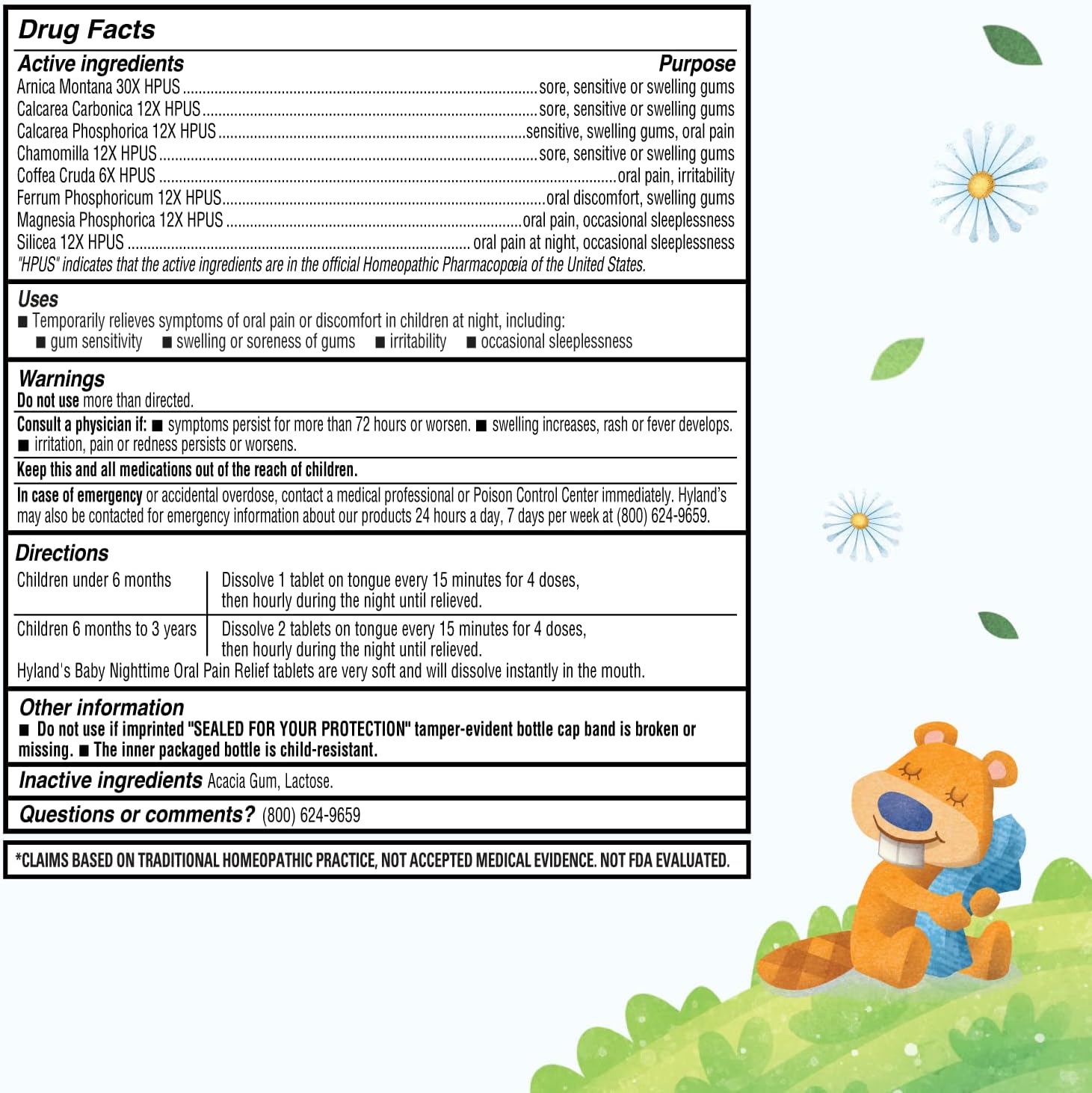 טבליות הרגעה ליליות של היילנד לתינוקות עם קמומיל, הקלה טבעית לאי נוחות, עצבנות ונפיחות בפה, עד 62 מנות (חבילה של 1, 125 טבליות בסך הכל)