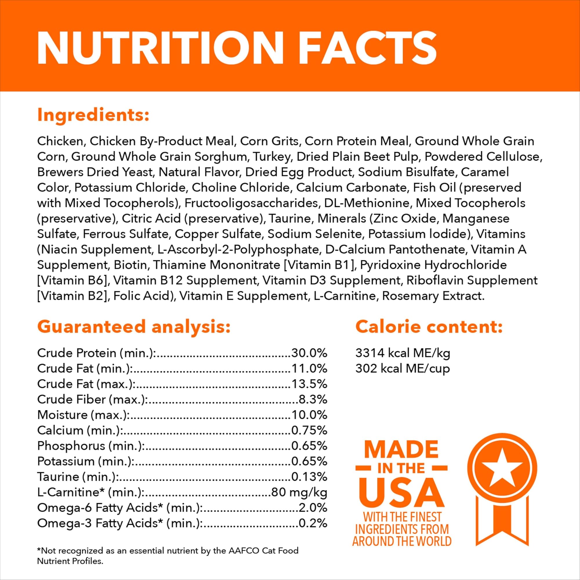 - שלם ומאוזן לחתולים בוגרים: 100% תזונה, 0% חומרי מילוי, מזון יבש זה לחתולים תומך בבריאות הגוף כולו עם חומרים מזינים חיוניים ומועשר בנוגדי חמצון למערכת חיסונית חזקה.