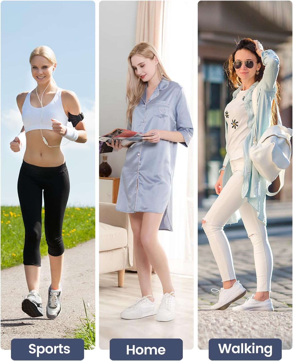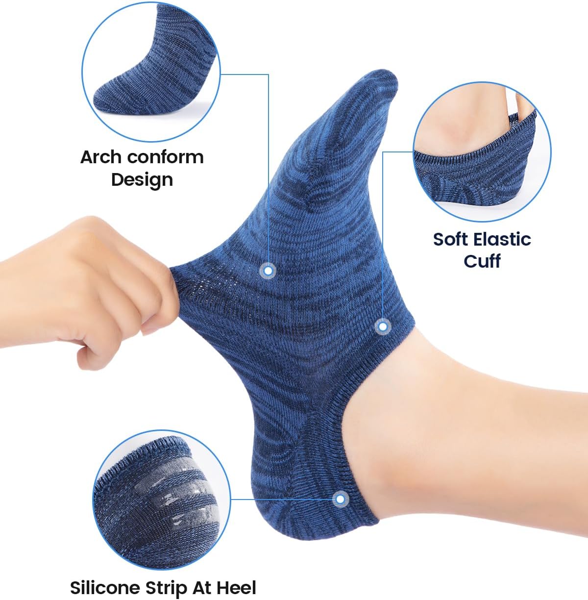 - ללא נראות בלתי נראית: קל להתאים סוגים שונים של נעליים, כגון נעלי ספורט, אוקספורד, נעלי ריצה, נעלי קז'ואל, נעלי אימון, נעלי ספורט אתלטיות ונעלי עסקים;, לא לנעליים בעלות גזרה נמוכה במיוחד