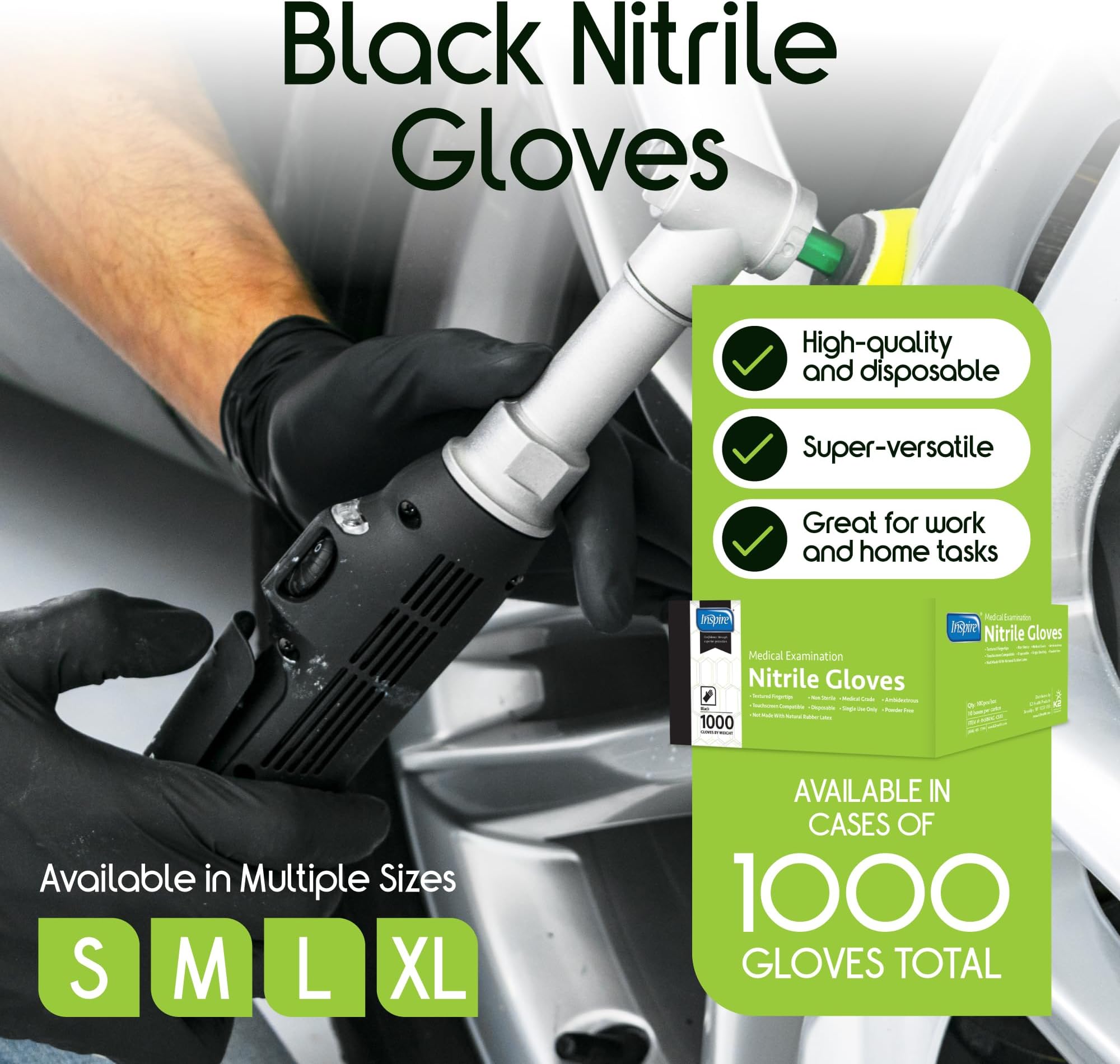 מארז של 1000 כפפות ניטריל של Inspire | כפפה חד פעמית שחורה באיכות מקורית ללא לטקס | 4.5 לבישול רפואי, ניקיון, מכונאי (שחור, מידה בינונית)