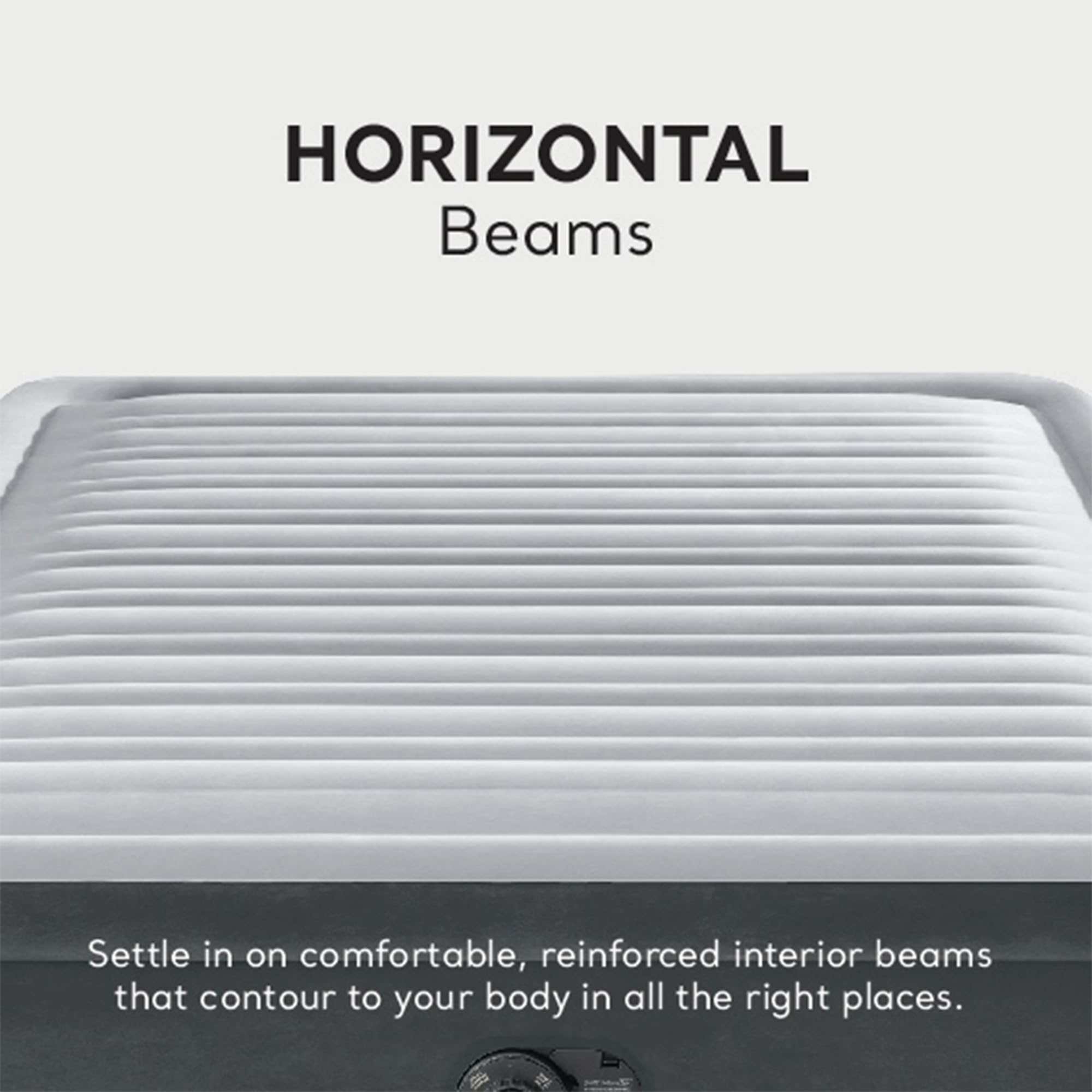 - נוחות – עם גובה מיטה של 18 אינץ', מערכת כיסי אוויר דו-שכבתית יוקרתית וייחודית זו מתאימה את עצמה לגוף לנוחות מירבית; עם חלק עליון ודפנות קטיפתי רכים למגע ועמידים בפני נקבים ושפשופים; תיק נשיאה לדרך כלול.