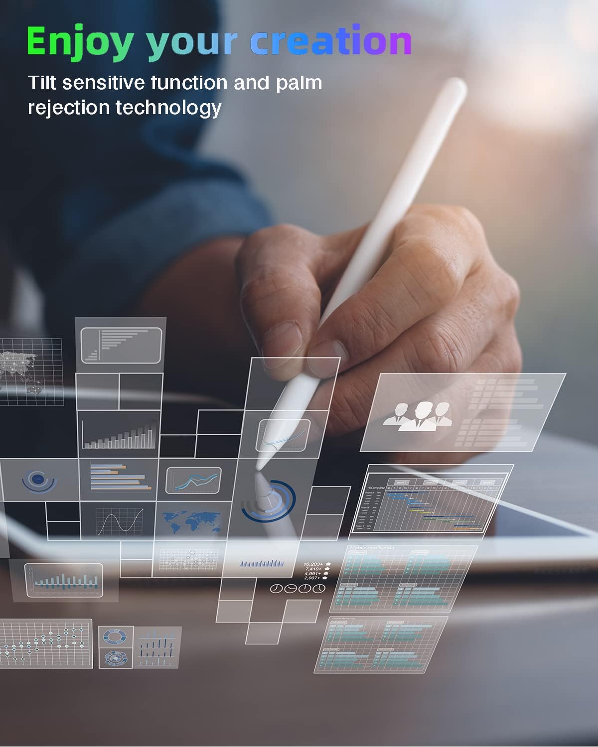 - 【רגישות הטיה ודיוק פיקסלים】 קצה 1.2 מ"מ יכול לבצע הוראות עדינות יותר, הרגישות גבוהה יותר והאות מדויק יותר ללא השהיה/נקודת שבירה. עט האייפד מציע פונקציית דחיית כף היד המאפשרת לך להניח את כף היד בנוחות על המסך. אל תהסס לשחרר את היצירתיות שלך באייפד.