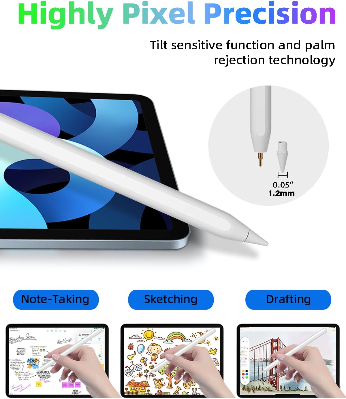 iPad Pencil דור שני עם טעינה אלחוטית מגנטית, רגישות הטיה, זהה לאפל עיפרון דור שני, תואם לאייפד פרו 11 אינץ' 1/2/3/4, אייפד פרו 12.9 אינץ' 3/4/5/6, אייפד אייר 4/5, אייפד מיני
