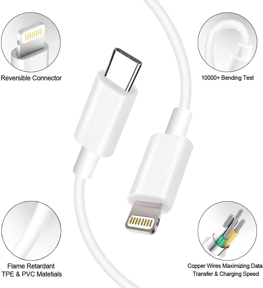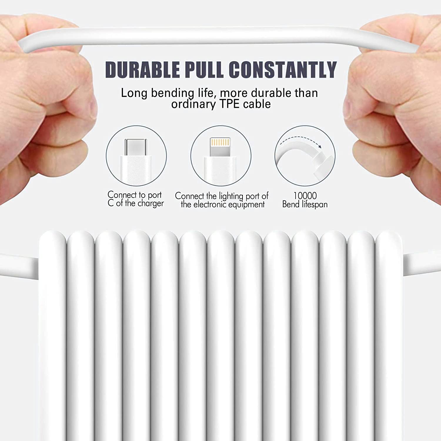 - 【מוצק ועמיד】 בלוק מטען זה של אפל כולל מבנה מוצק, וכבל ה-Lightning של האייפון נבדק במעבדה ועומד ב-10,000 כיפופים. יתרה מכך, לקצוות ה-Lightning וה-USB יש שכבת הגנה נוספת כדי לשפר עוד יותר את העמידות ולמנוע התפוררות.