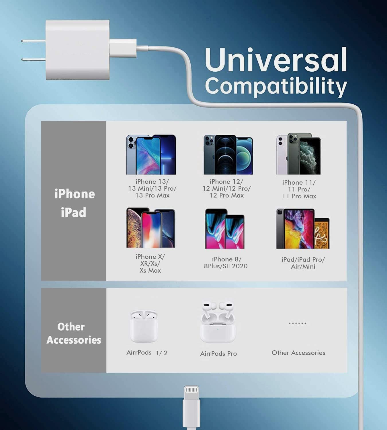 מטען מהיר לאייפון 14 13, מטען מהיר לאייפון [מאושר על ידי Apple MFi] כבל Lightning 20W מטען סוג C USB C מתאם טעינה מהירה תואם לאייפון 13/13 פרו מקס/12/12 פרו/11/XS/XR/X, אייפד