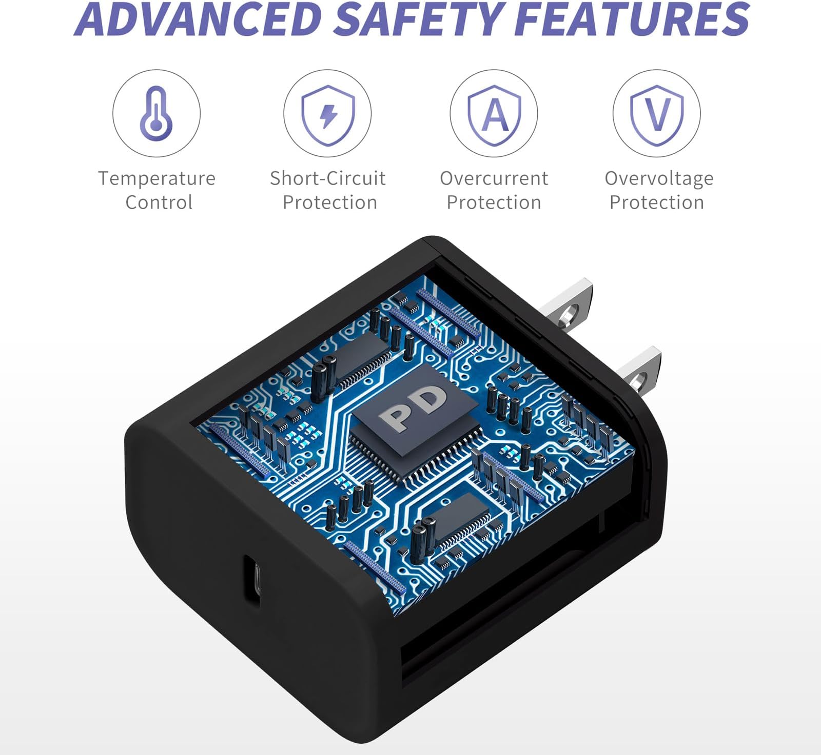 - תאימות אוניברסלית: מתאם PD 20W לטעינה מהירה עבור iPhone 14/14 Plus/14 Pro/14 Pro Max/13/13 Mini/13 Pro/13 Pro Max/12/12Pro/12 Pro Max/12 Mini/11/11 Pro/11 Pro Max/XS Max/XS/X/XR/8 Plus/8, iPad Pro/iPad Air/iPad, AirPods Pro; מהירות טעינה סטנדרטית עובדת עם iPhone 7/7 Plus/6s/6s Plus/6/6 Plus/SE/5s/5/5c.