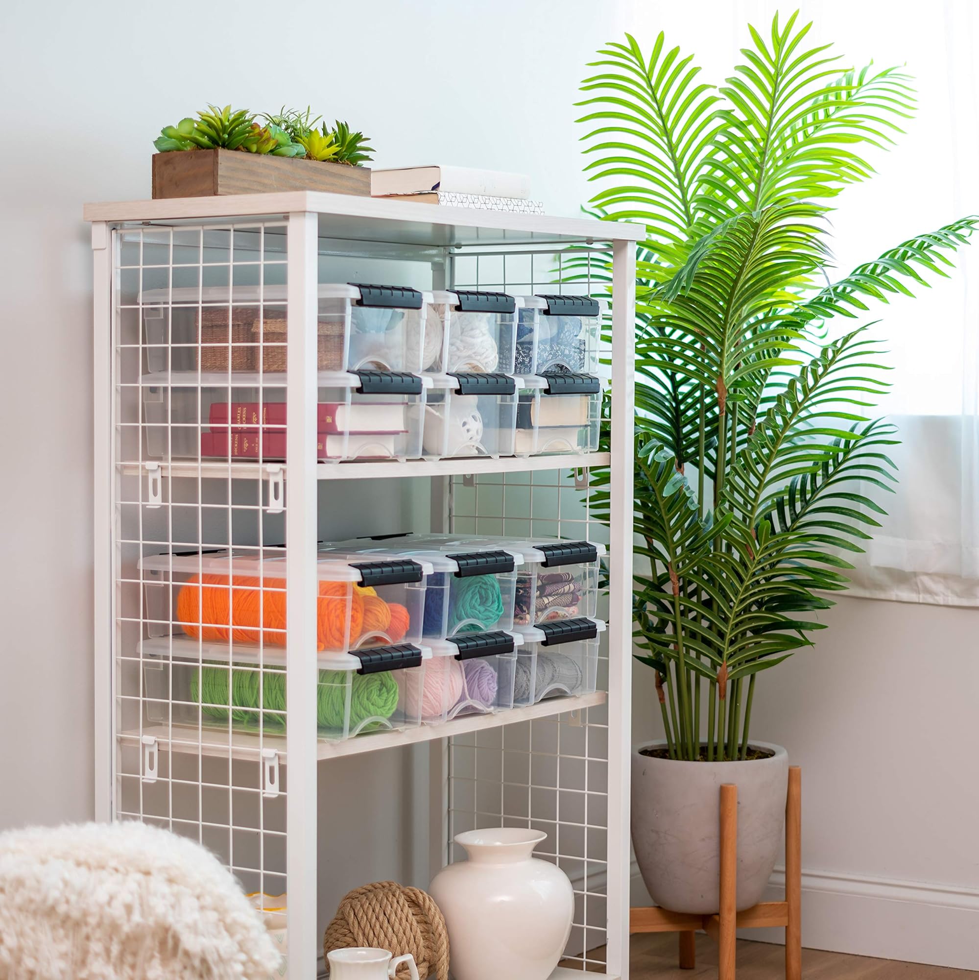 פחי אחסון מפלסטיק הניתנים לערום בנפח 6 ליטר עם מכסים של IRIS USA, חבילה של 3 - ללא BPA, תוצרת ארה"ב - פתרון ארגון שקוף, תפסים, מיכלים עמידים הניתנים לקינון, ידית משיכה מאובטחת - שקוף/שחור