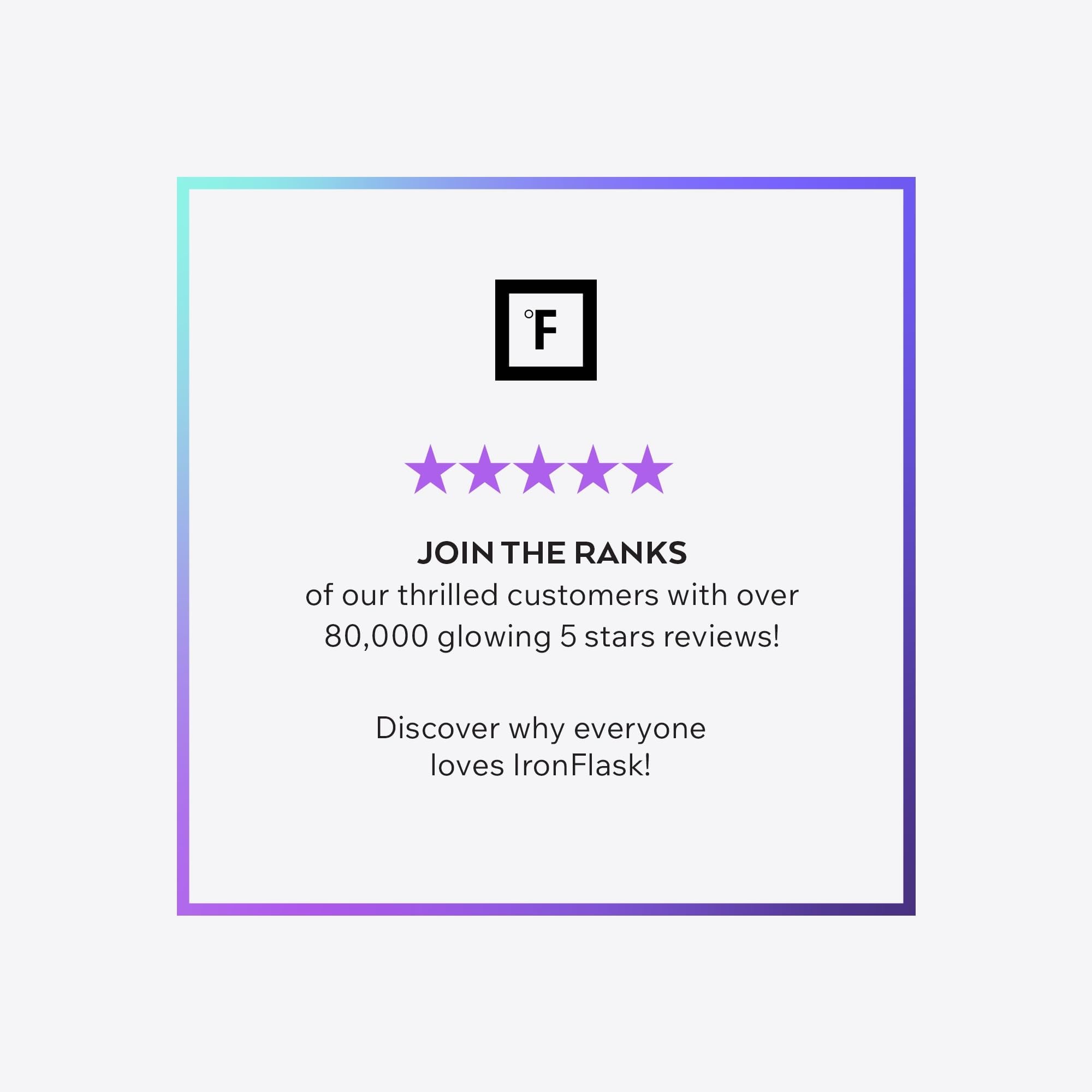 - בקבוק מים ספורטיבי מבודד: להתראות זיעה! בידוד הדופן הכפול הופך את בקבוק ה-Iron Flask ללא זיעה! הוא שומר על המשקה שלכם קר עד 24 שעות, וחם עד 12 שעות. *הערה: רק בקבוקי 14 אונקיות, 18 אונקיות ו-22 אונקיות מתאימים למחזיקי כוסות*