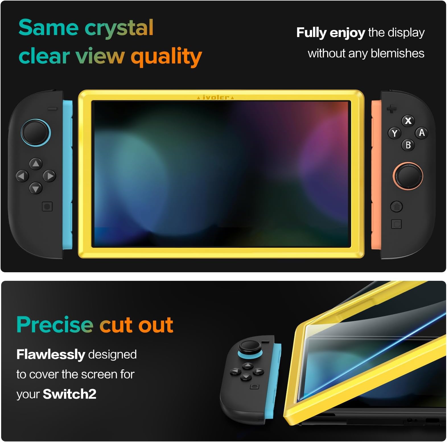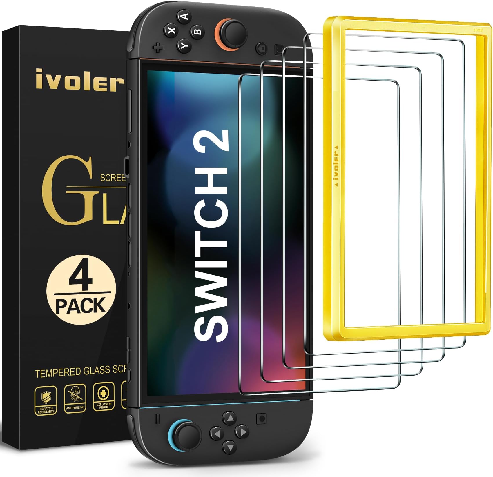 מגני מסך מזכוכית מחוסמת של ivoler בגודל 4 יחידות, מעוצבים עבור נינטנדו סוויץ' 2 2025 עם [מסגרת יישור] שקוף HD שקוף [גרסה מעודכנת] מגן מסך עבור סוויץ' 2 בגודל 7.9 אינץ'