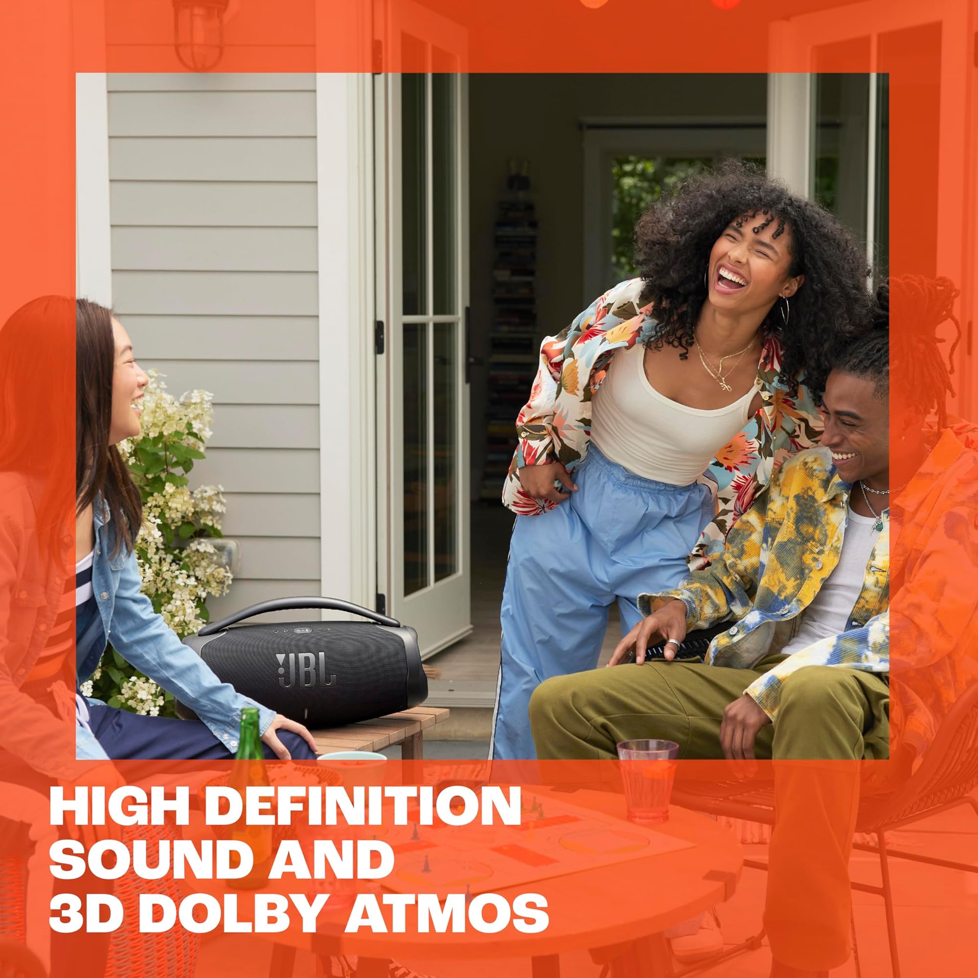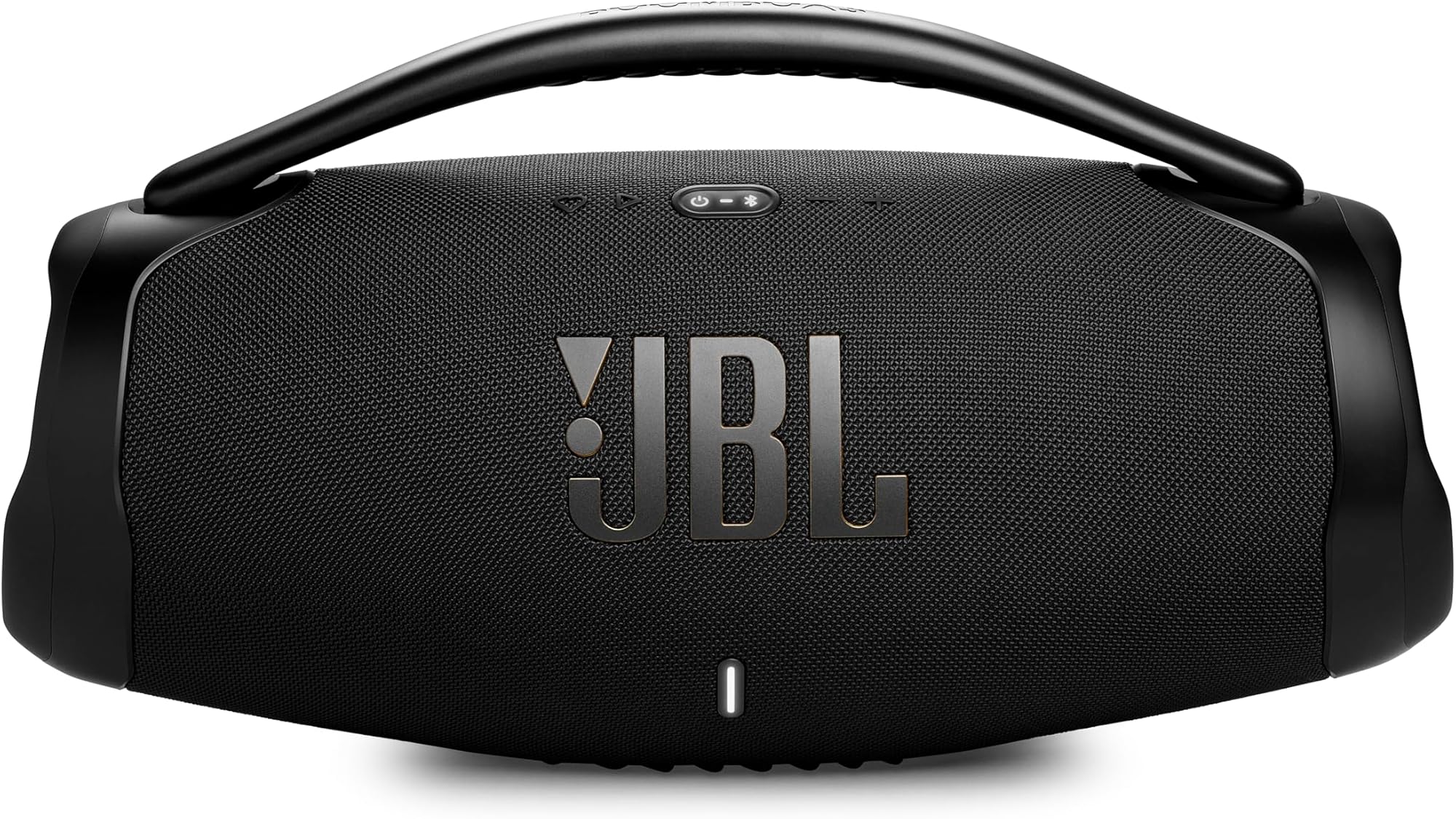 - All fit portable speaker for inside and outdoor listening: The JBL Boombox 3 Wi-Fi's self-tuning feature detects the speaker's surroundings using dual built-in microphones, which optimize audio quality to deliver the best possible sound experience wherever the speaker is placed in the room—or in the great outdoors.