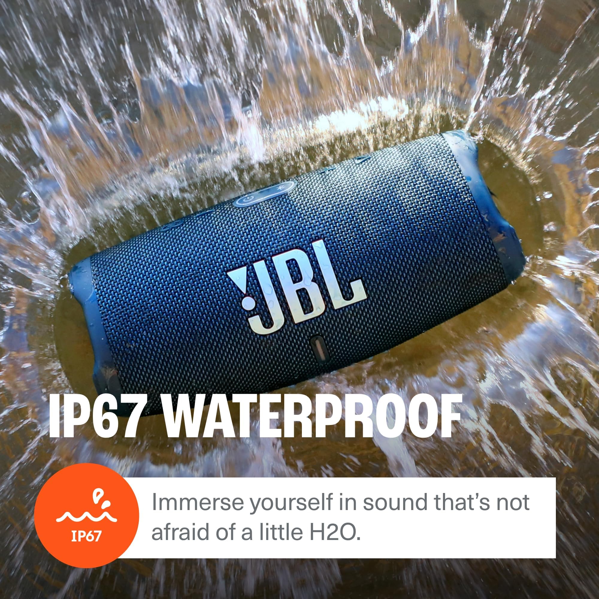 - IPX7 WATERPROOF - Bring your speakers anywhere. Pool party? Perfect. Sudden cloudburst? Covered. Bash on the beach? Charge 5 is IPX7 waterproof and dustproof for fearless outdoor entertainment.