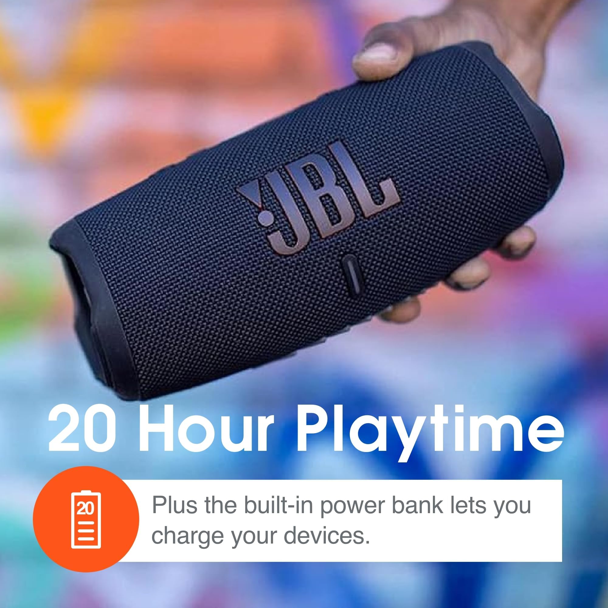 - 20 HOURS OF PLAYTIME - The fun doesn't have to stop. Packed with an incredible 20 hours of battery life, Charge 5 lets you party all day & into the night. Plus, a built-in powerbank lets you charge your devices without taking a break from the tunes.