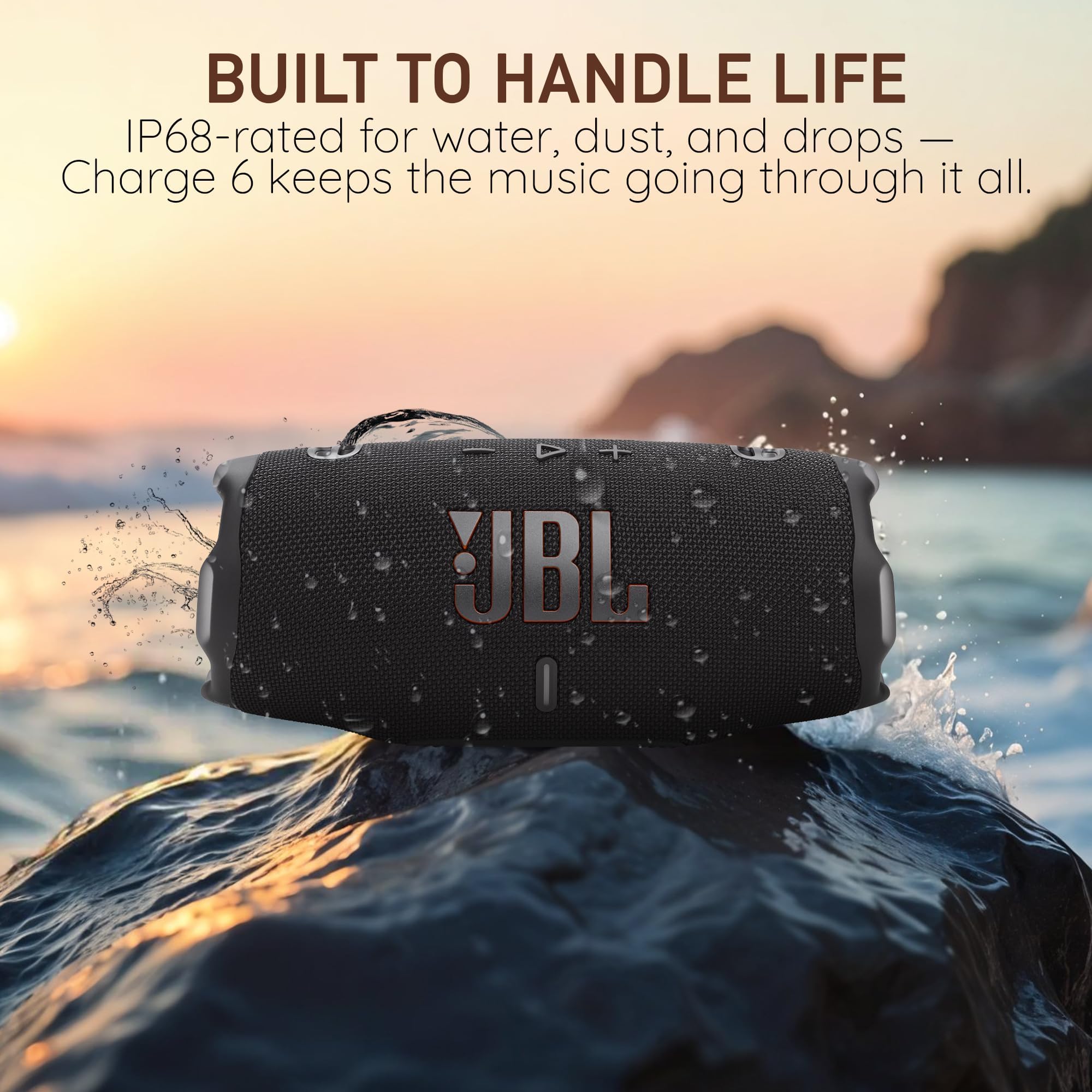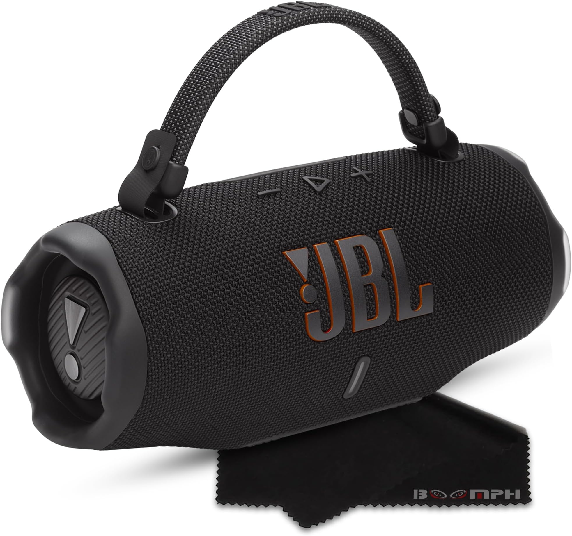 JBL Charge 6 Portable Bluetooth Speaker, IP68 Waterproof, Dustproof, Drop-Proof, AI Sound Boost, Built-in Powerbank, Carrying Strap, 28H Battery – Black – Boom h's Ultimate Performance Cloth Solution