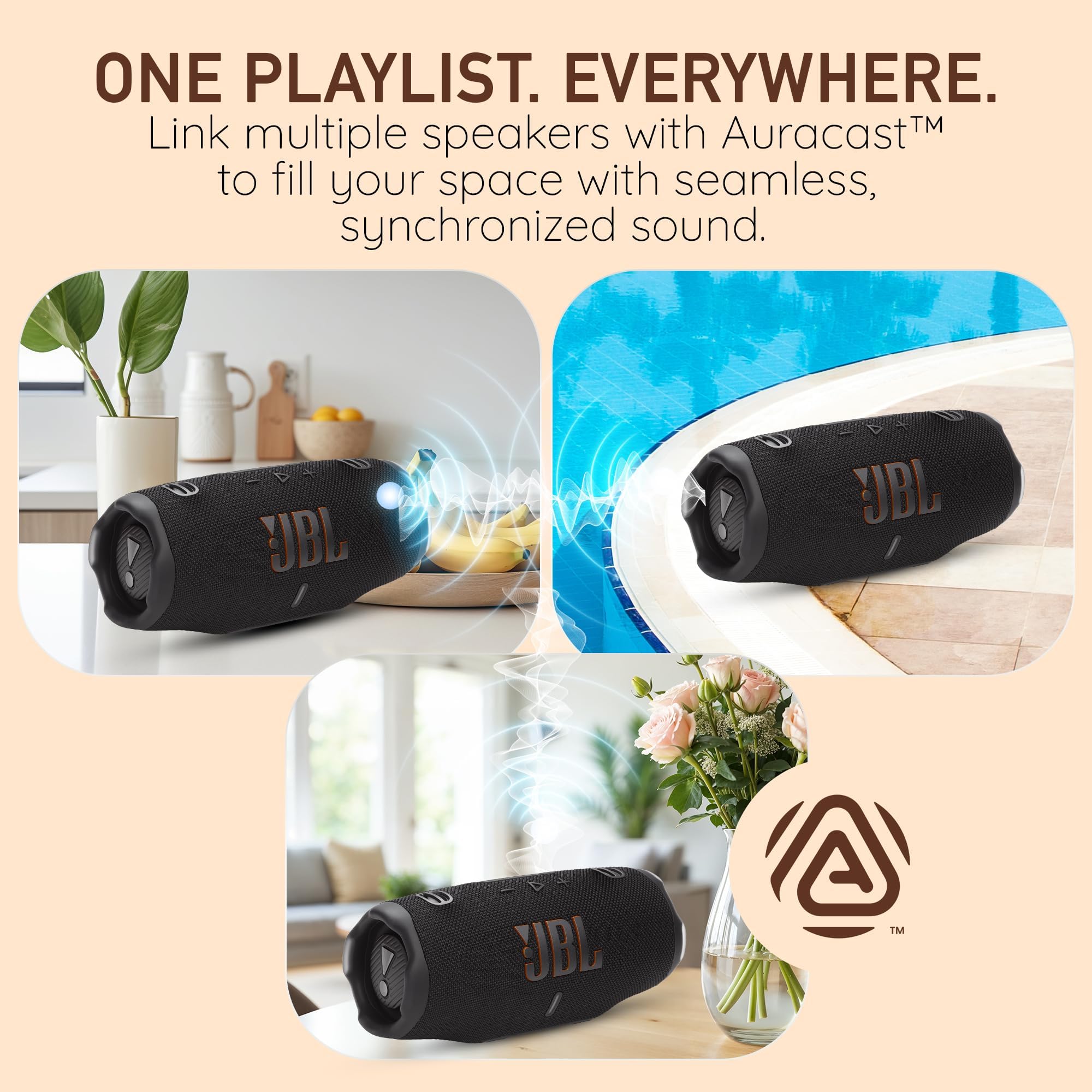 For effortless mobile sound that can easily be carried with you, get a hold of this Charge 6 Portable Bluetooth Speaker from JBL. With a water- and dustproof design, you can feel comfortable taking the Charge 6 outside near the backyard pool or at the beach. Your streaming music sounds better than ever with up to 45W of audio out that's enhanced by JBL AI Sound Boost. With Auracast support, you can easily share your favorite playlists with other compatible speakers without the hassle of Bluetooth pairing. Whatever you listen to can be enjoyed all day long with up to 24 hours of battery life per charge. It holds so much power that you can recharge your mobile device as you listen, using the Charge 6 as a power bank.