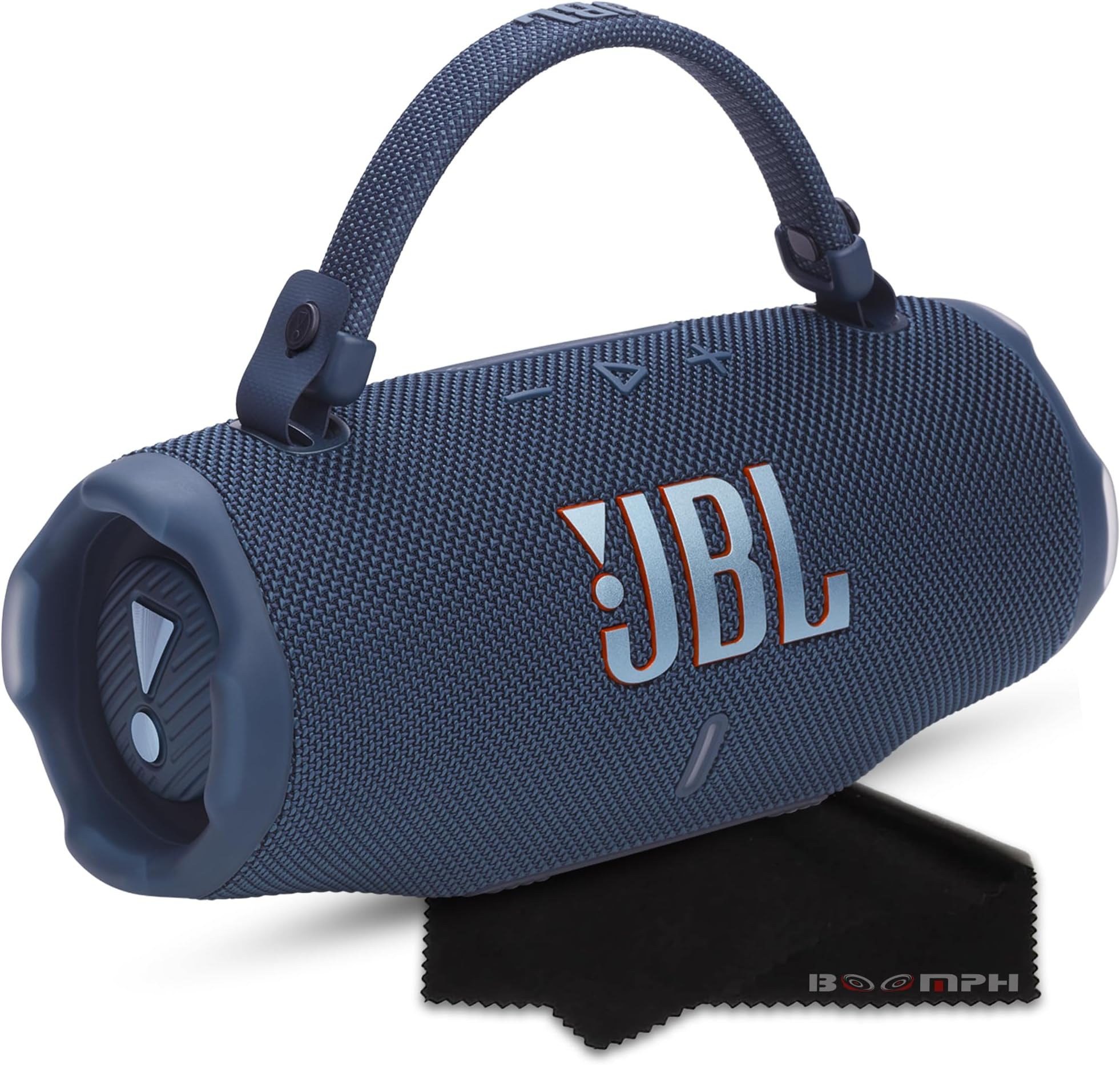 JBL Charge 6 Portable Bluetooth Speaker, IP68 Waterproof, Dustproof, Drop-Proof, AI Sound Boost, Built-in Powerbank, Carrying Strap, 28H Battery – Blue – Boom h's Ultimate Performance Cloth Solution