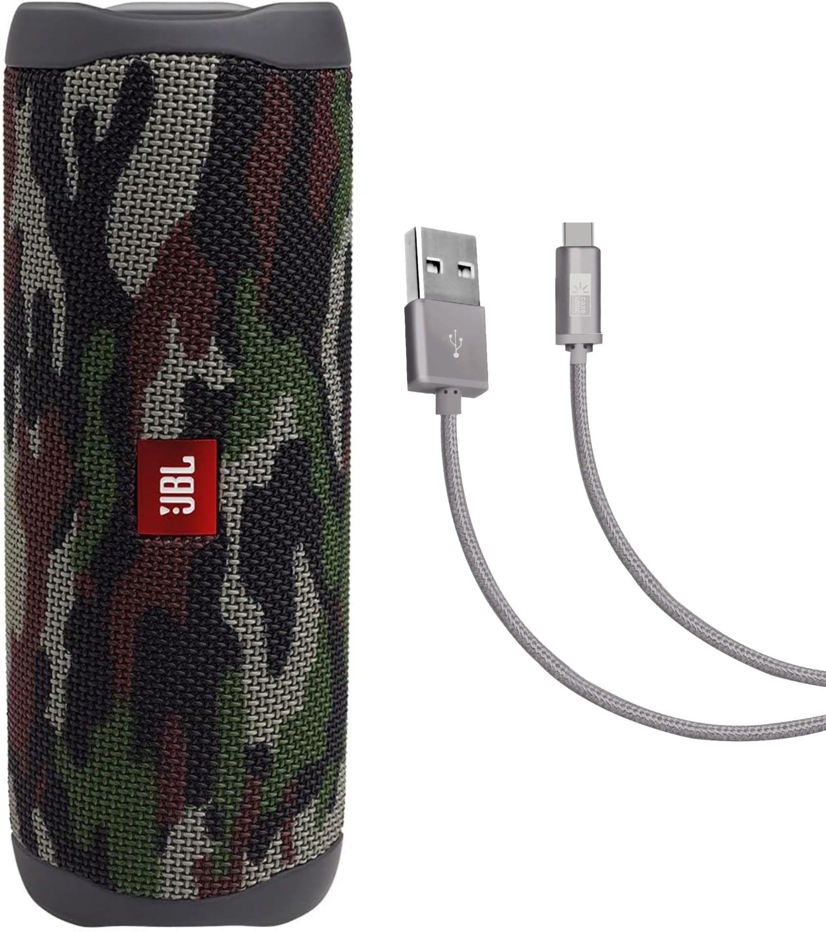 - SPEAKER + CABLE - This bundle includes one (1) JBL Flip 5 in squad and one (1) 6-foot, gray Case Logic Braided USB Type-C Charge & Sync Cable.