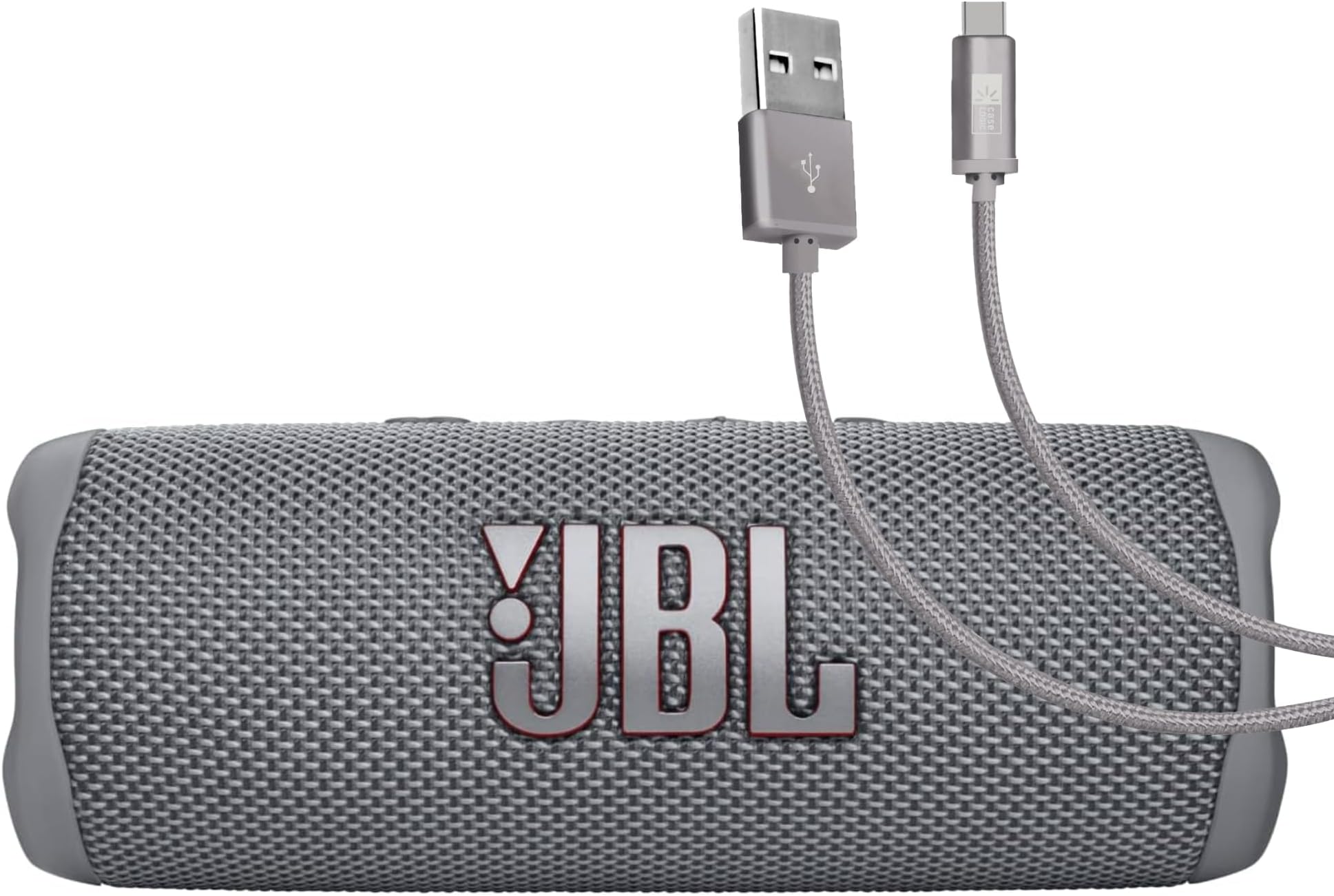 - SPEAKER + CABLE - This bundle includes one (1) JBL Flip 6 in gray and one (1) 6-foot, gray Case Logic Braided USB Type-C Charge & Sync Cable.
