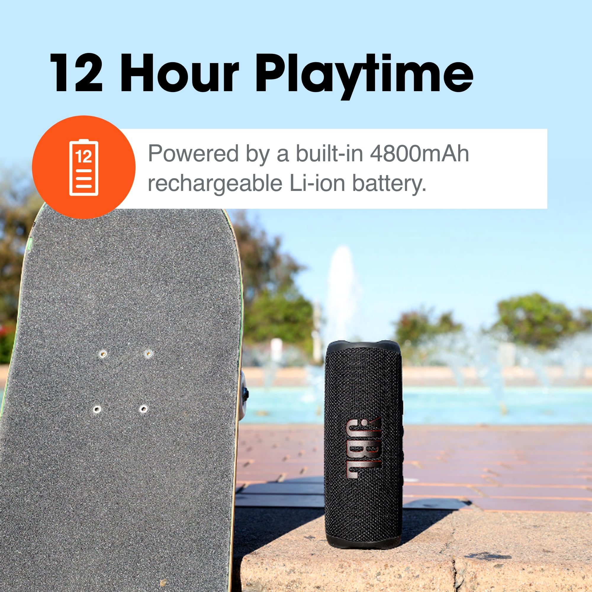 - ALL-PURPOSE BLUETOOTH SPEAKER - Take the party everywhere with Flip 6, a portable Bluetooth speaker that delivers powerful stereo sound. Enjoy up to 12 hours of continuous, high-quality audio playtime.