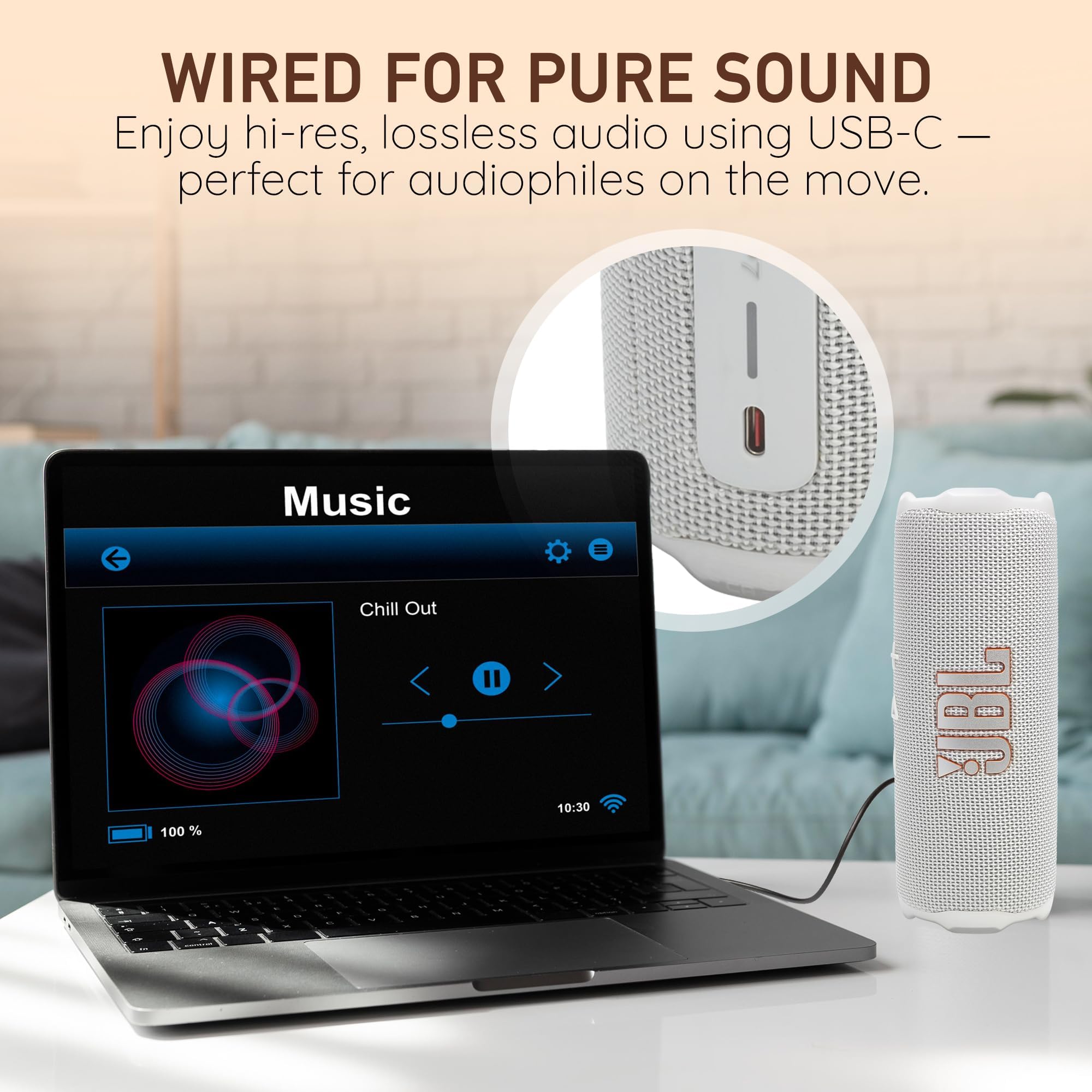 If you want to elevate the quality of your music from the typical Bluetooth streaming, use the Flip 7's USB-C port to connect a laptop or other device to playback lossless audio sources.