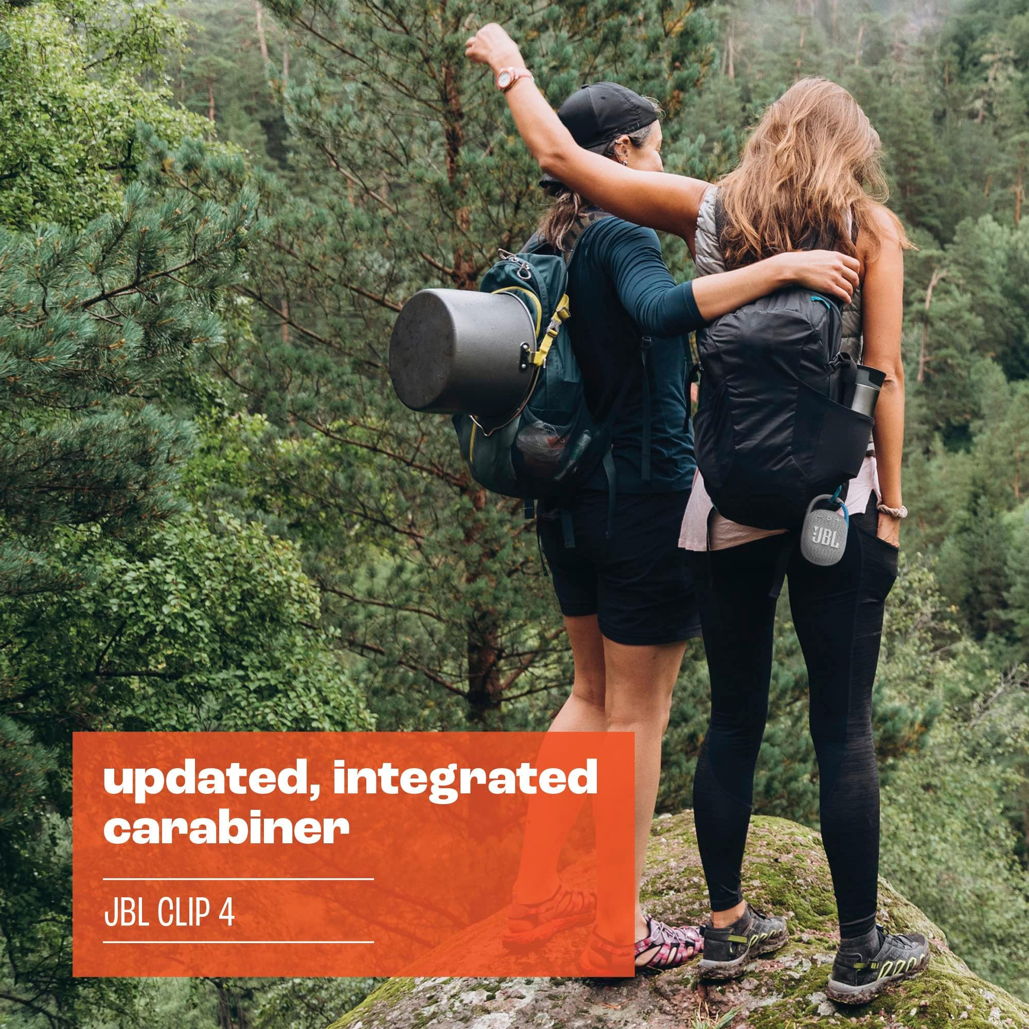 - Integrated carabiner: With a redesigned carabiner that's integrated into the speaker itself for extra protection, take your JBL Clip 4 Eco anywhere and everywhere. Just clip on a belt, strap, or buckle and go explore the world.