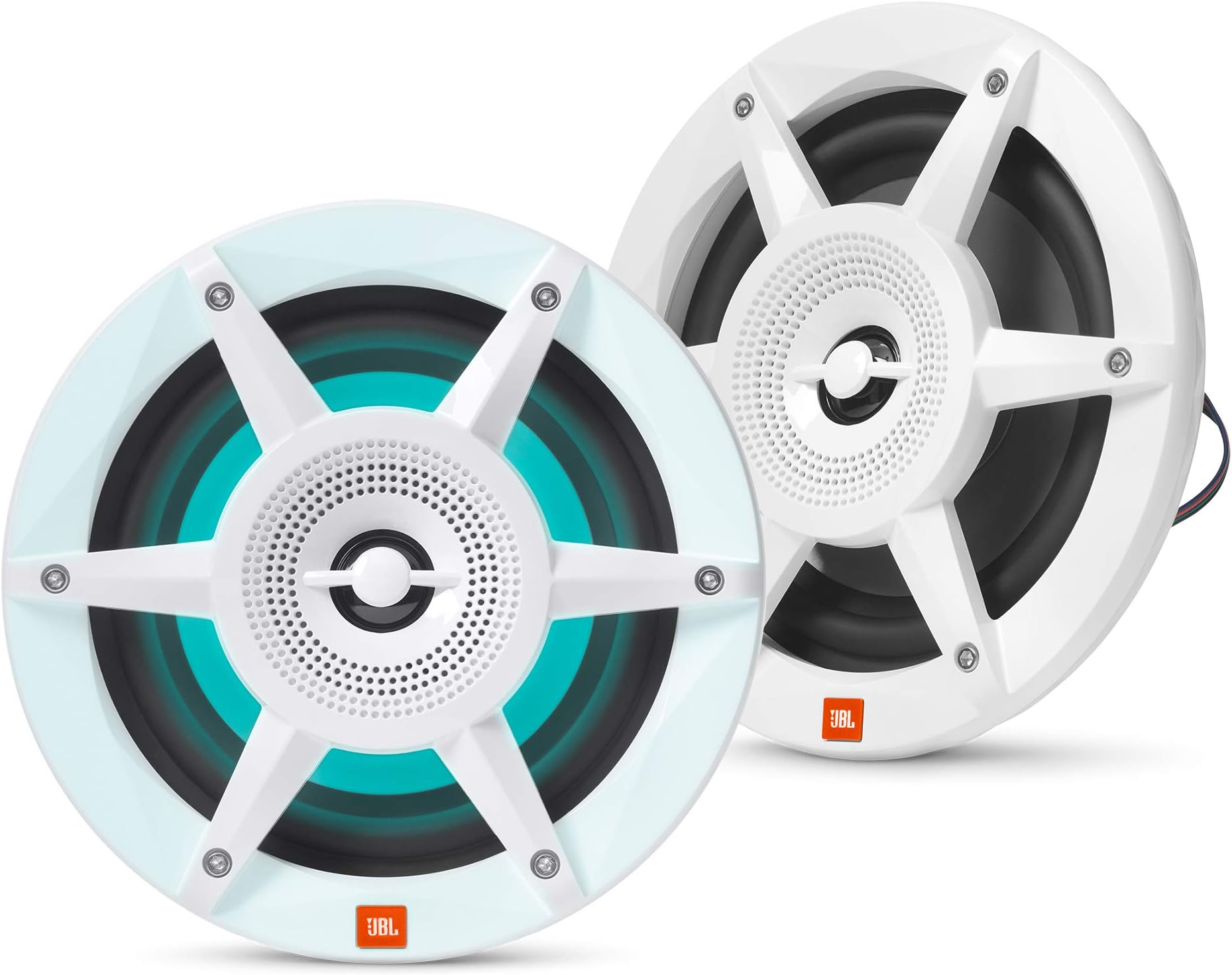 JBL’s Stadium Marine loudspeakers leverage JBL’s world class audio engineering and music reproduction with purpose-built marine loudspeakers that will survive the rigors of the harsh marine environment. Choose from the most popular sizes for boats and watercraft. The 6-1/2" coaxial, 8" three-way convertible speaker system and 10" woofer have Plus One polypropylene woofer and midrange cones, Mylar tweeter domes (Except Subwoofer), one piece cast polymer baskets, sealed magnets, and rubber woofer surrounds for high SPL performance. Wind, water or engine noise will not drown them out. Speakers are UV resistant in a marine grade IPX3 (IPX5 from front) weather resistant and include RGB perimeter illumination and go through 300 hours of salt spray testing. And they’re ready to make amazing music on the water.