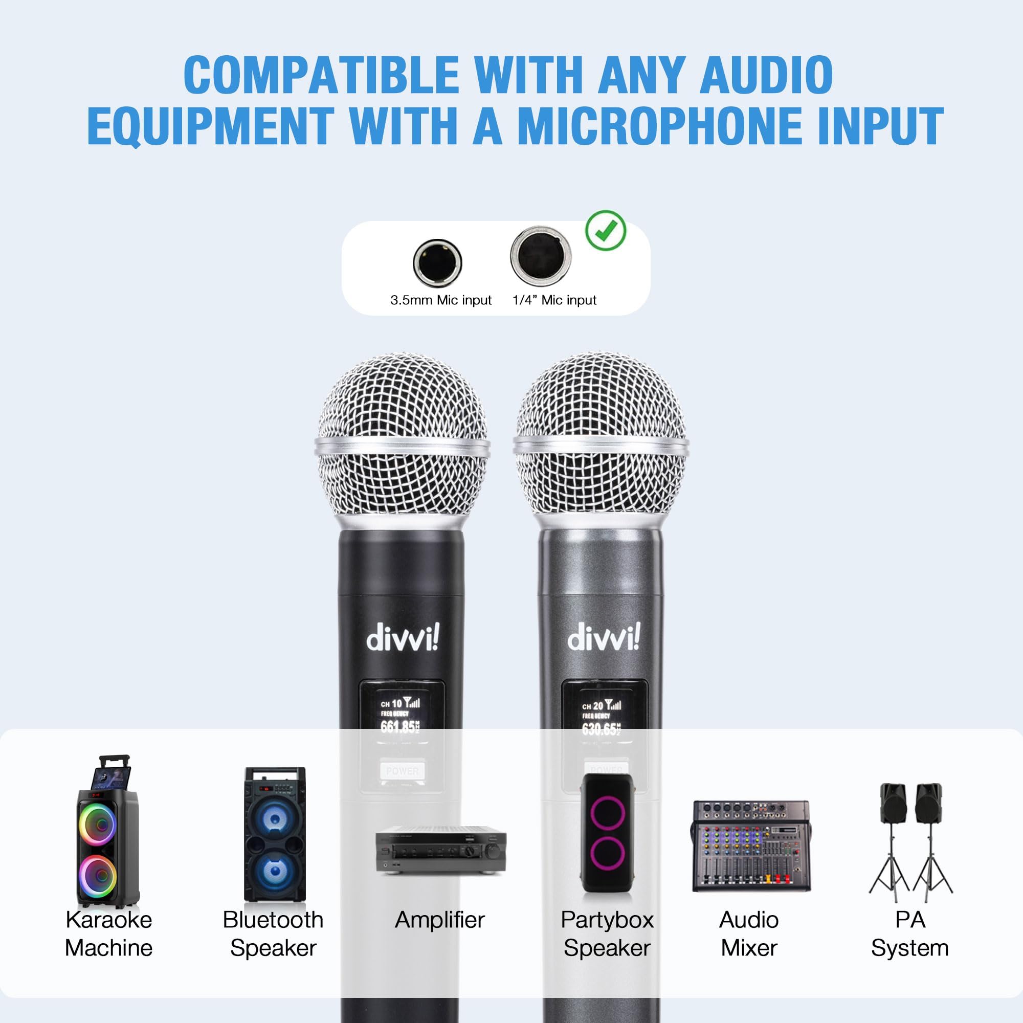 - INCLUDES DIVVI! WIRELESS MICROPHONE PAIR - Designed for the speaker, performer, or educator, these microphones keep the freedom of movement without compromising on sound quality.