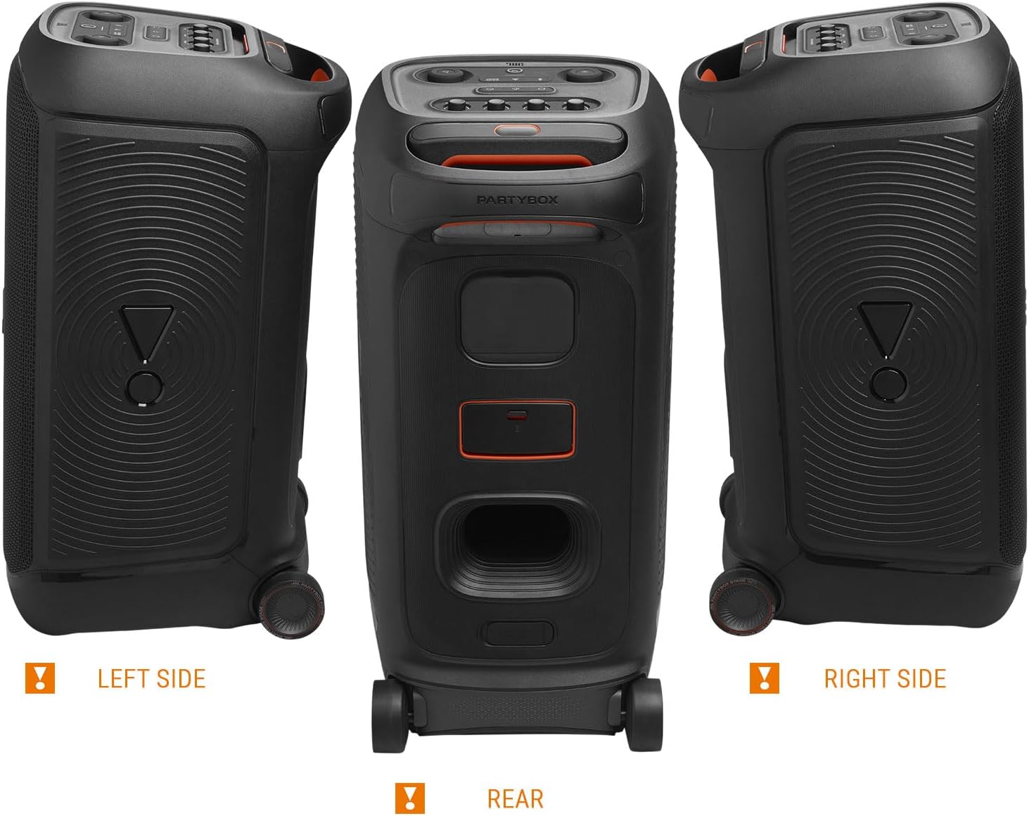 Whether you’re partying with friends in the park or by the seaside, the JBL PartyBox Stage 320 is IPX4 splashproof, means a little rain won’t stop the fun.