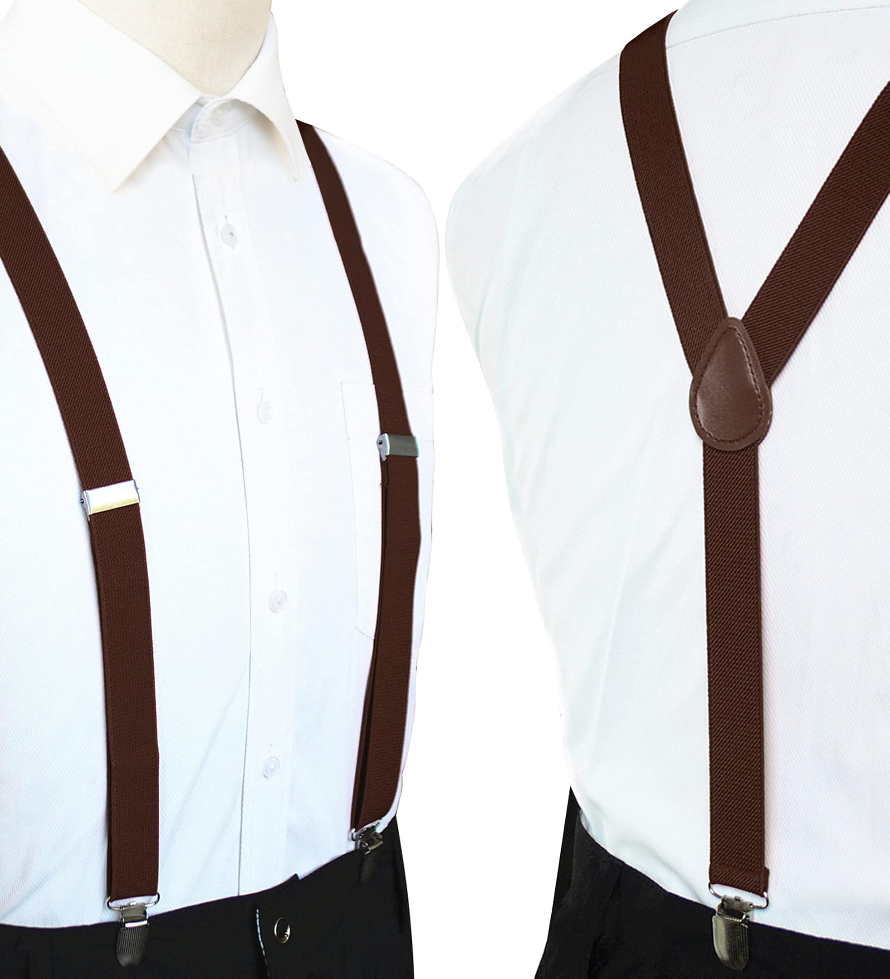כתפיות לגברים חומות של JEMYGINS עם 3 קליפסים חזקים, גשרים מתכווננים (10)