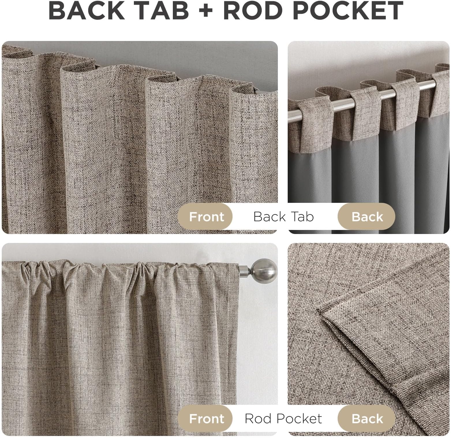 וילונות האפלה לחדר שינה של Joydeco - וילונות פשתן טבעיים 37X72 אינץ', מבודדים תרמית 100% האפלה 2 פאנלים וילונות חוסמי אור, כיס מוט ולשוניות אחוריות, מחשיך פרטיות לסלון