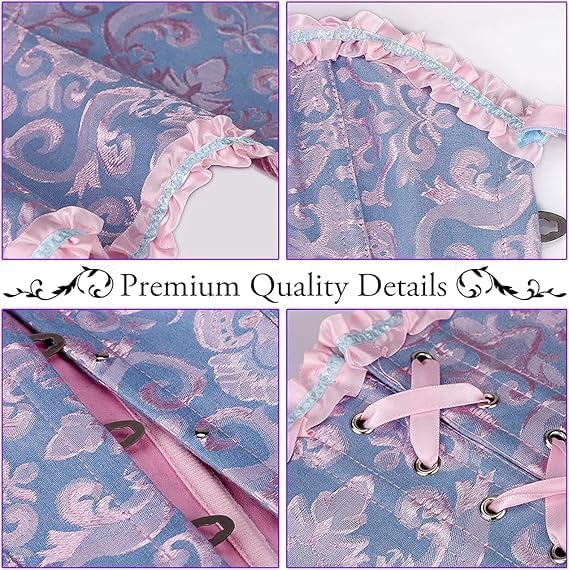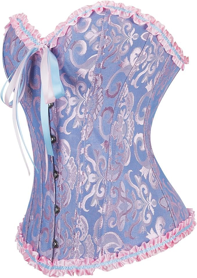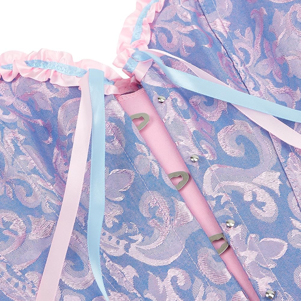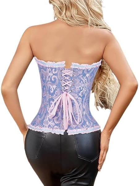 מחוך JoyPeak לנשים, מחוך תחרה עם גוזיות, בגד גוף פוש-אפ בסגנון רנסנס (ארה"ב, אלפא, גדול 3X, רגיל, רגיל, גדולות, כחול ורוד)