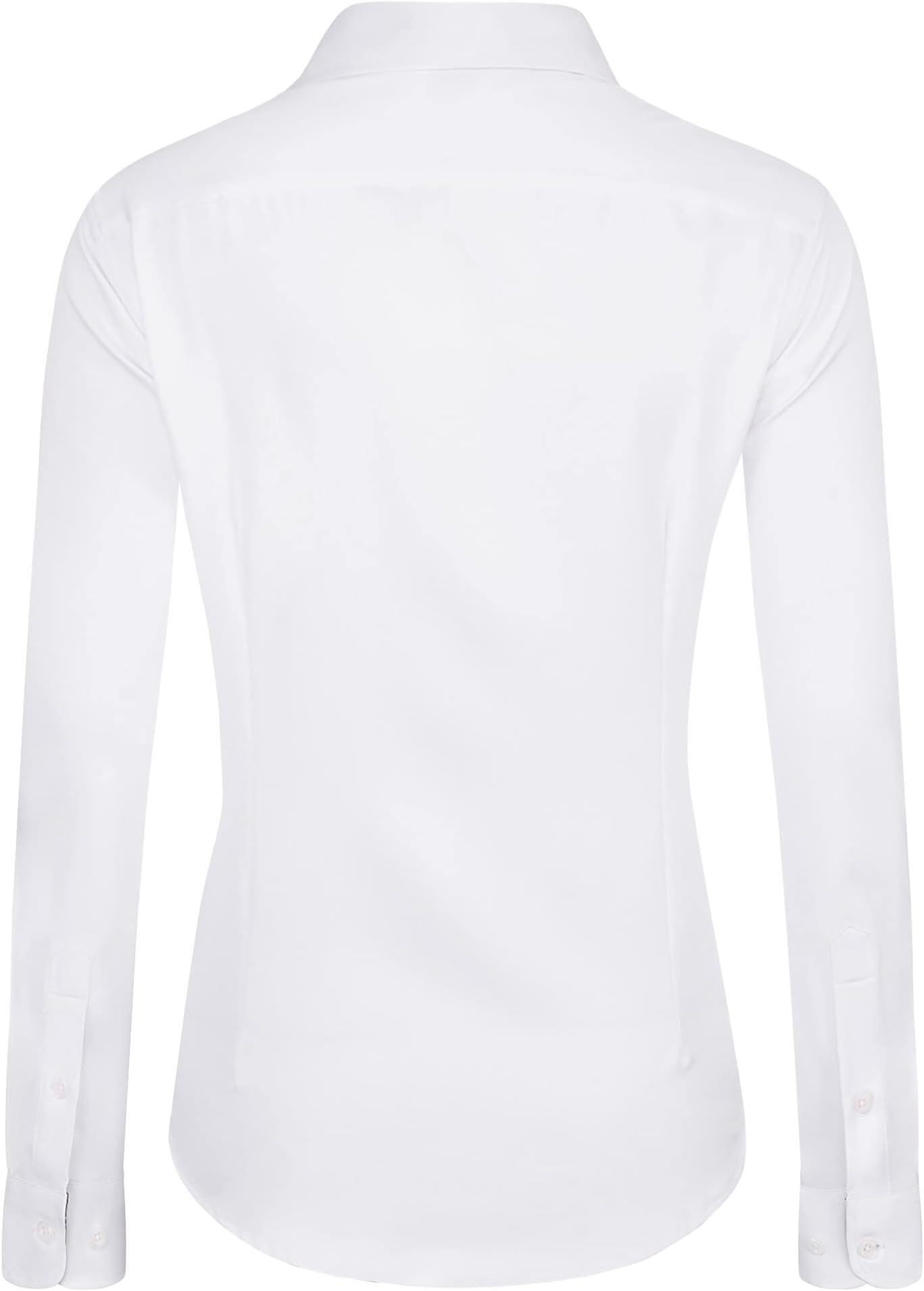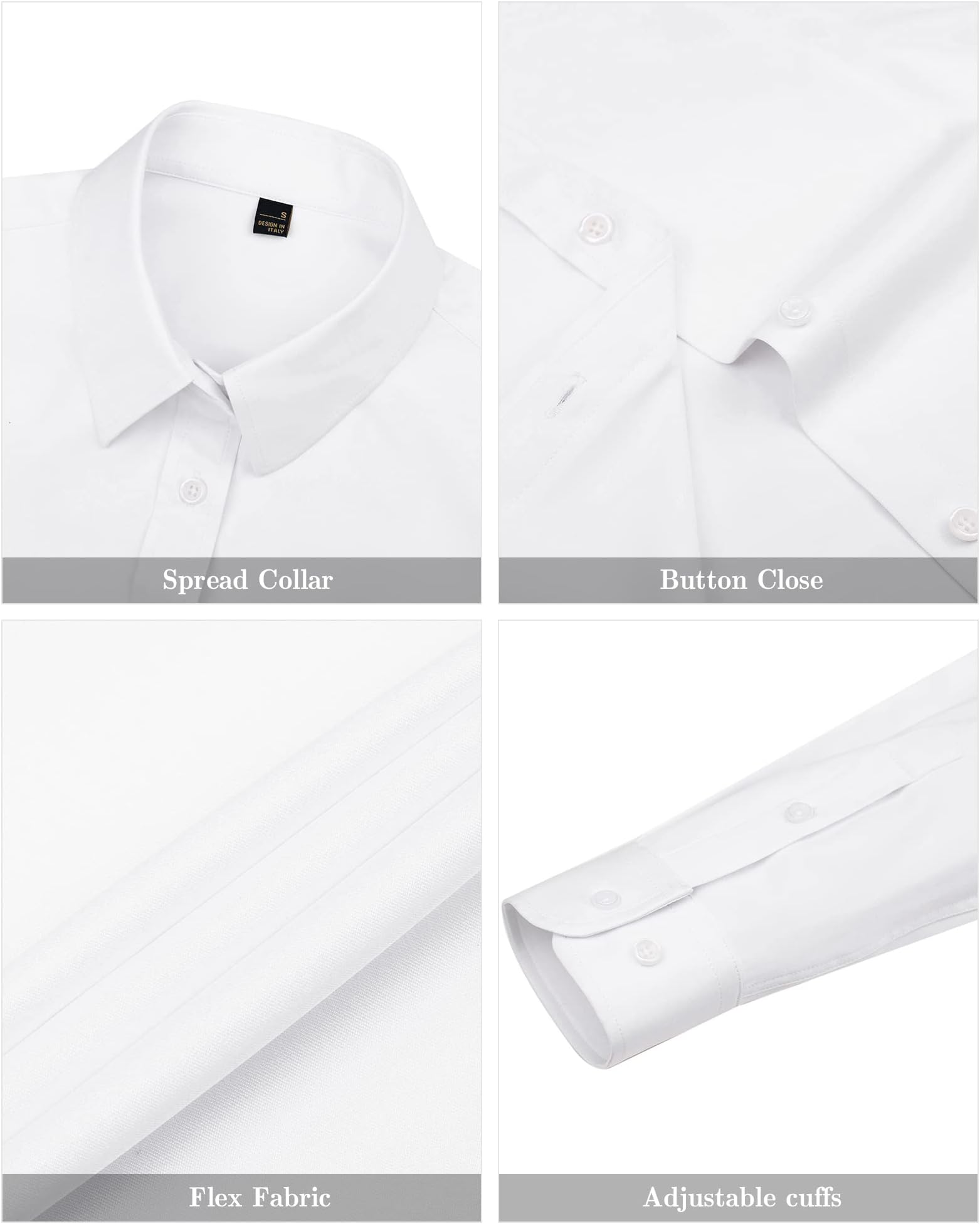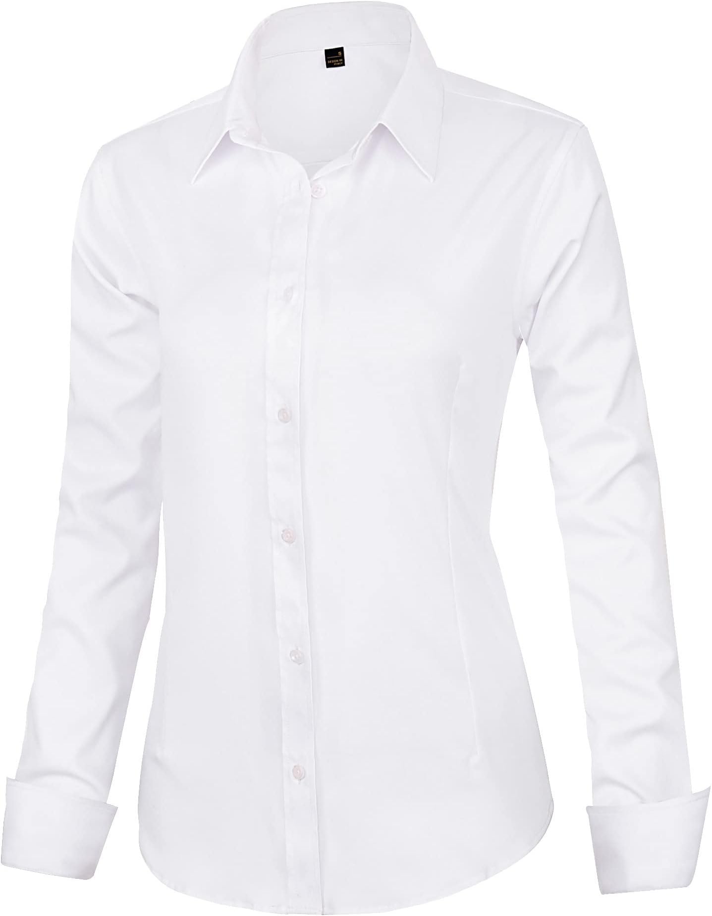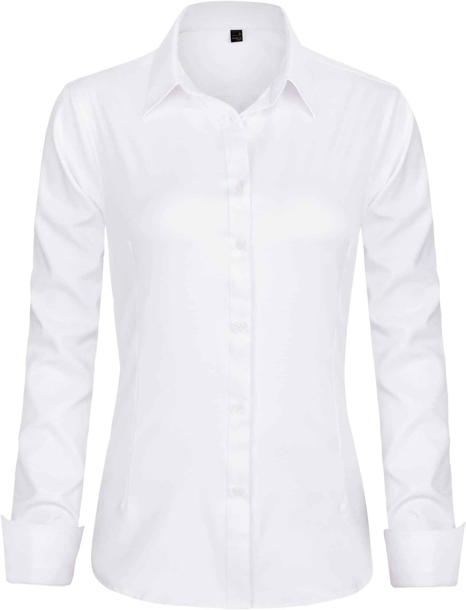חולצות שמלה לנשים עם שרוולים ארוכים, חולצה מכופתרת ללא קמטים, חולצה עסקית קז'ואל, משרד, חולצות עבודה, לבן בינוני