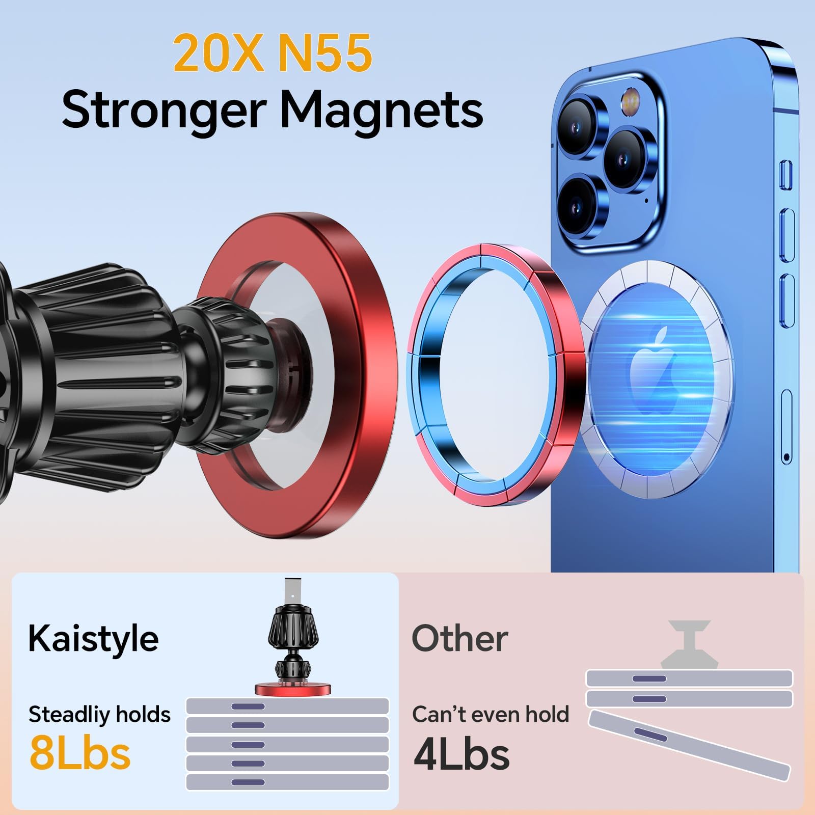 Kaistyle עבור Magsafe רכב מתקן【20 מגנטים חזקים】מעמד טלפון מגנטי לרכב מתקן טלפון מתקן להתקנה על לוח מחוונים מחזיקי טלפון סלולרי לרכב שלך אביזרים לנשים גברים לאייפון 17 16 15 14