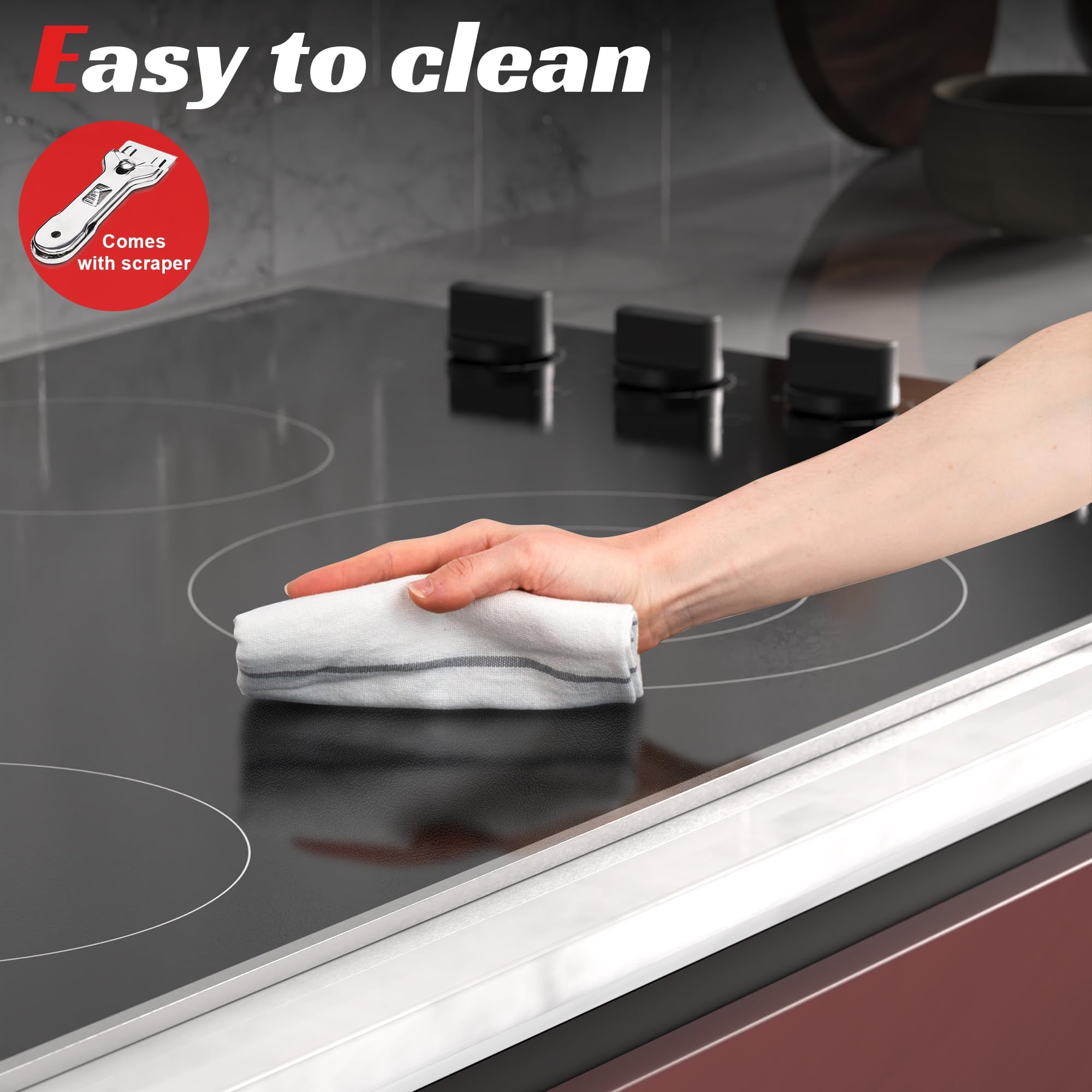 - 【כיריים חשמליות בגודל 30 אינץ' עם מסגרת מתכת להגנה על זכוכית】בניגוד למשטחי בישול חשמליים אחרים, לכיריים החשמליות בגודל 30 אינץ' יש מסגרת מתכת נוספת שיכולה למנוע שבירת הזכוכית עקב התנגשות מוגזמת ולהאריך את חיי הכיריים החשמליות. מסגרת המתכת הכסופה האלגנטית והאופנתית לא רק מגנה על הזכוכית, אלא גם גורמת לכיריים החשמליות עם הכפתורים להיראות טוב יותר באופן כללי. כיריים חשמליות נשלפות מתאימות בצורה מושלמת לכל ארון.