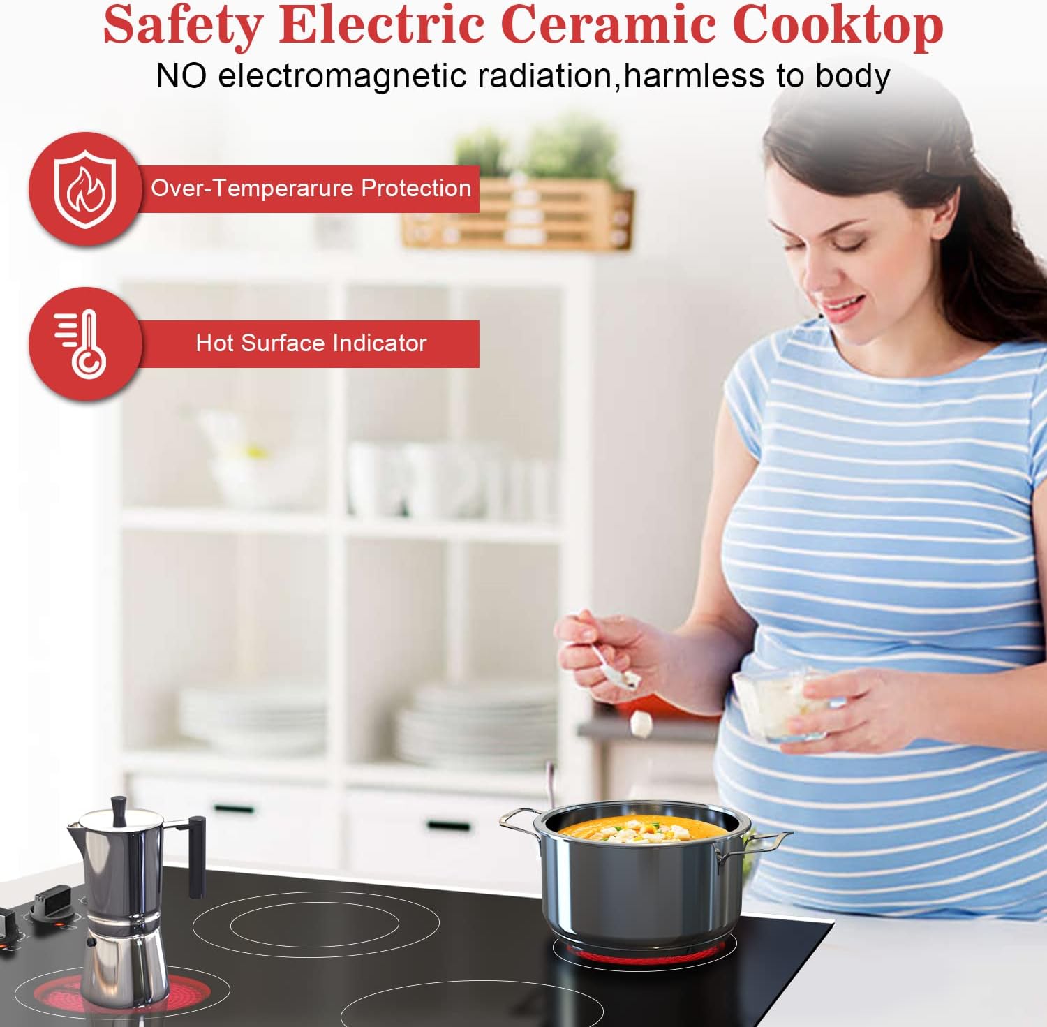 - 【כיריים חשמליות קורנות בטוחות】משטח הכיריים בגודל 30 אינץ' תוכנן במיוחד לבטיחות, וכולל מגוון פונקציות הגנה בטיחותיות, כגון מחוון משטח חם, המזכיר לכם שהטמפרטורה גבוהה מדי; הגנה מפני טמפרטורה גבוהה מדי, פונקציית כיבוי בטיחות אוטומטית, כאשר היא מזהה שהטמפרטורה הפנימית של הכיריים החשמליות בגודל 30 אינץ' גבוהה מדי, הן יכבו אוטומטית. כיריים קרמיות מסוג זה אינן כרוכות בקרינה אלקטרומגנטית, ואינן מזיקות לגוף האדם.