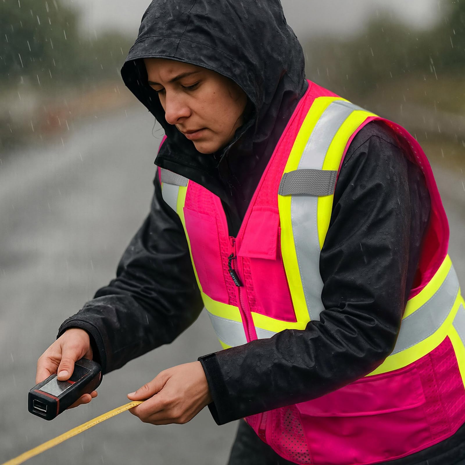 אפוד בטיחות KAYGO עם כיסים - אפוד מחזיר אור בעל נראות גבוהה אפוד בנייה ANSI Class 2 (סוג R, לא FR) KG0100 (S, ורוד, יחידה אחת)