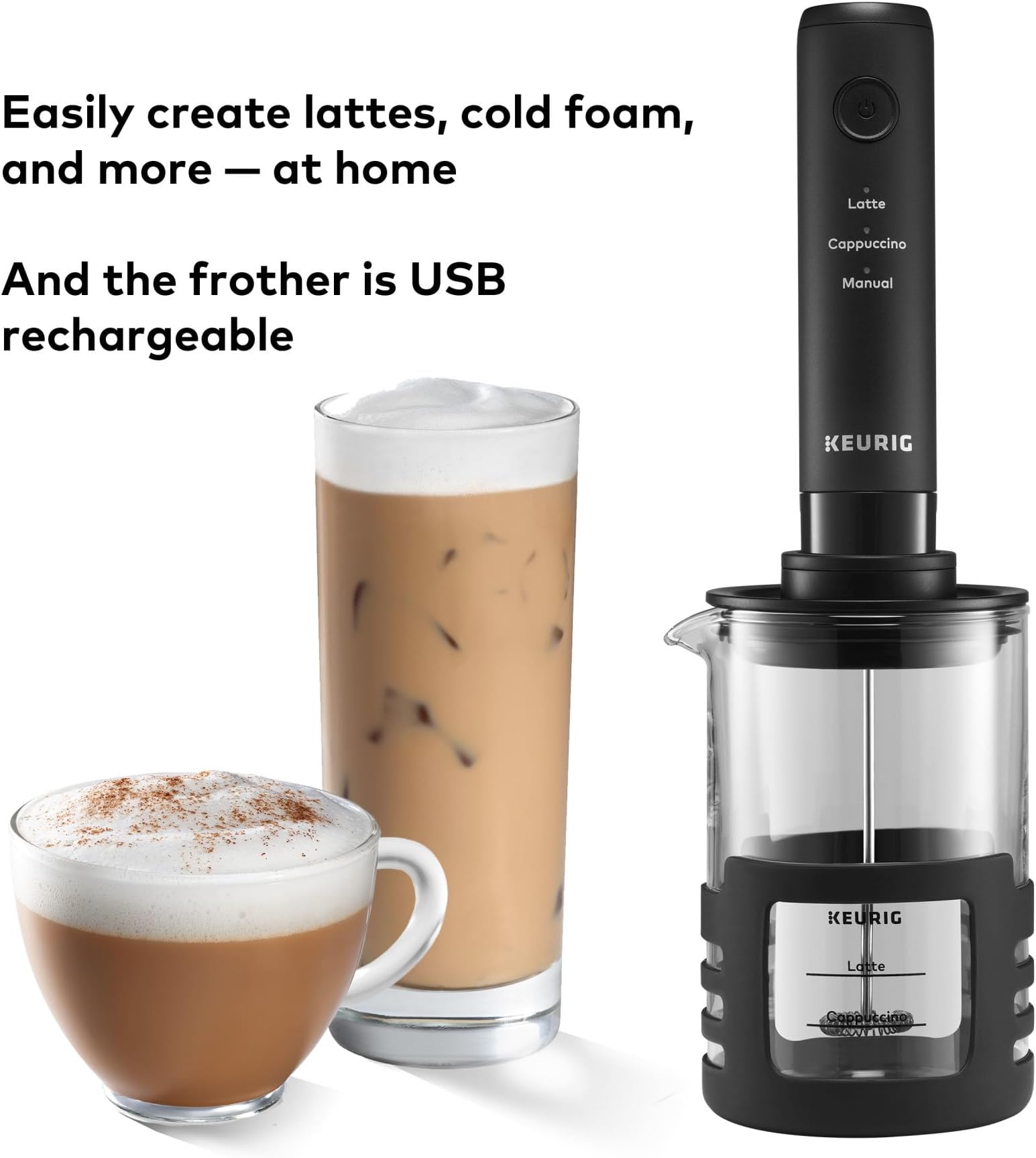 Keurig SimpleCafe Frother, Rechargeable Handheld Milk Frother for Lattes, Cappuccinos & Iced Coffee, USB Cord Included, Microwave-Safe Frothing Cup, Hot & Cold Foam Maker