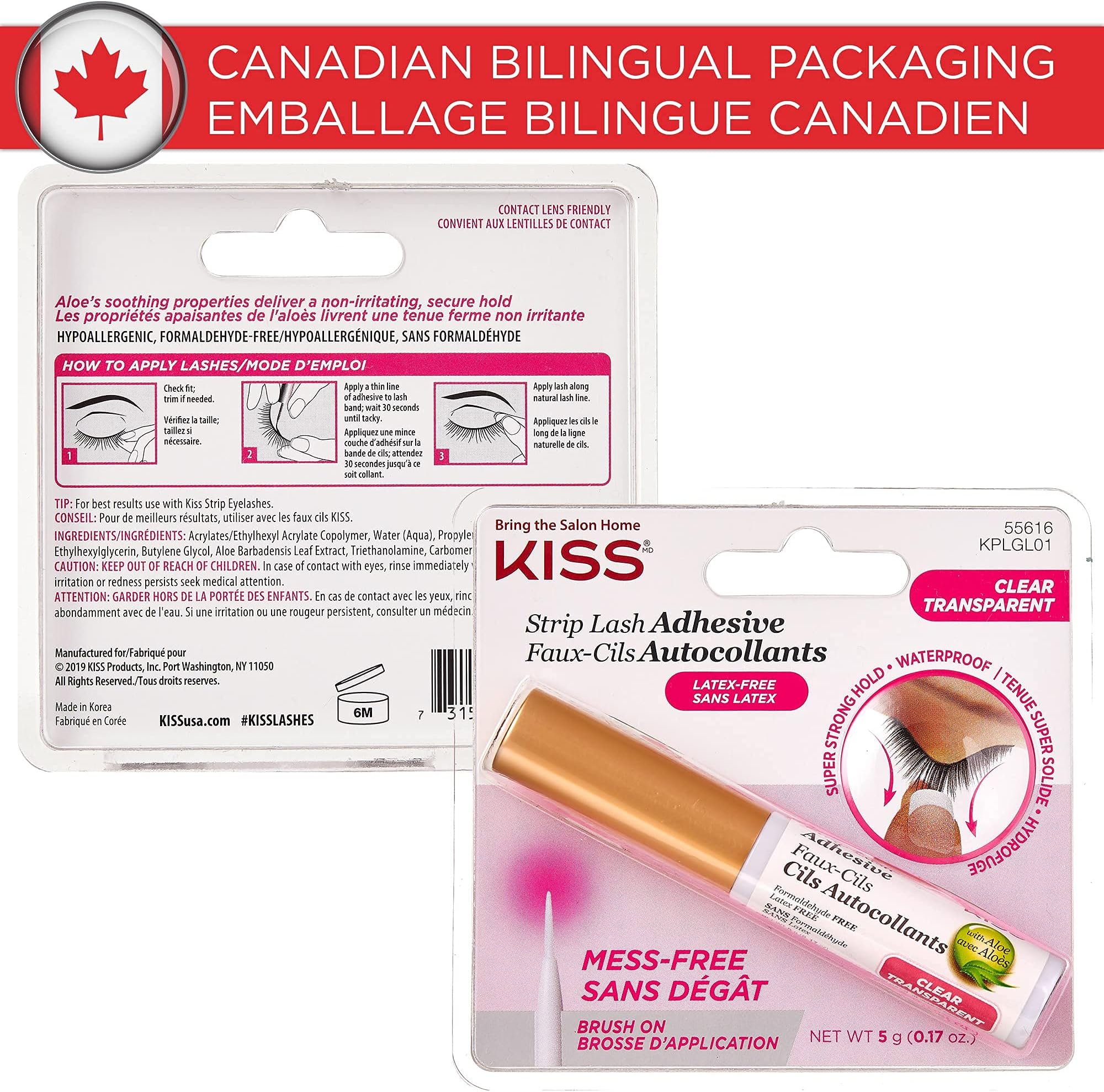 דבק ריסים שקוף KISS עם אלוורה, עמיד למים, ללא פורמלדהיד ולטקס, ללא ריח, ללא אכזריות, דבק ריסים חזק במיוחד עם מברשת אפליקטור, 0.17 אונקיות.
