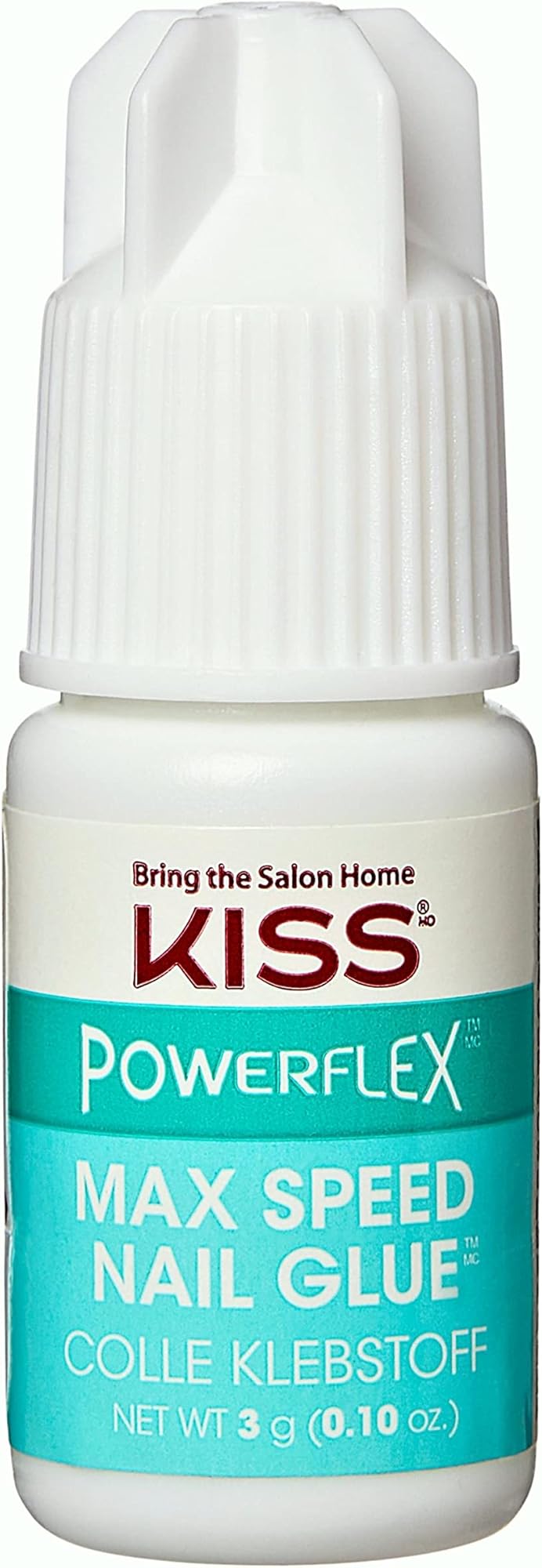 דבק ציפורניים KISS PowerFlex מהירות מרבית - דבק ייבוש מהיר להדבקת ציפורניים ותיקונים עם אפליקטור פיה, אידיאלי לקצוות ועיטוף, משקל נקי 0.10 אונקיות (3 גרם)