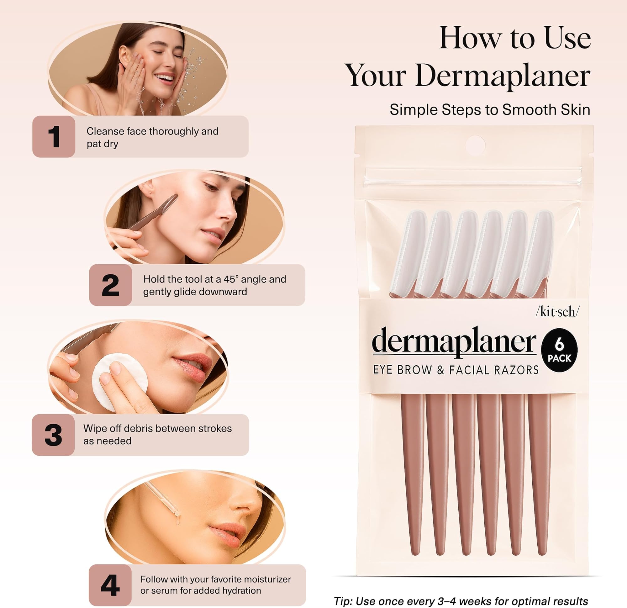 - פילינג עדין והסרת שיער מהפנים: השגי עור חלק וזוהר יותר בעזרת סכין הגילוח Kitsch dermaplane לנשים. סכין גילוח זו מסירה בעדינות תאי עור מתים, פלומות אפרסק והצטברויות, ועוזרת לשפר את מרקם העור ולחשוף מראה רענן ובהיר יותר.