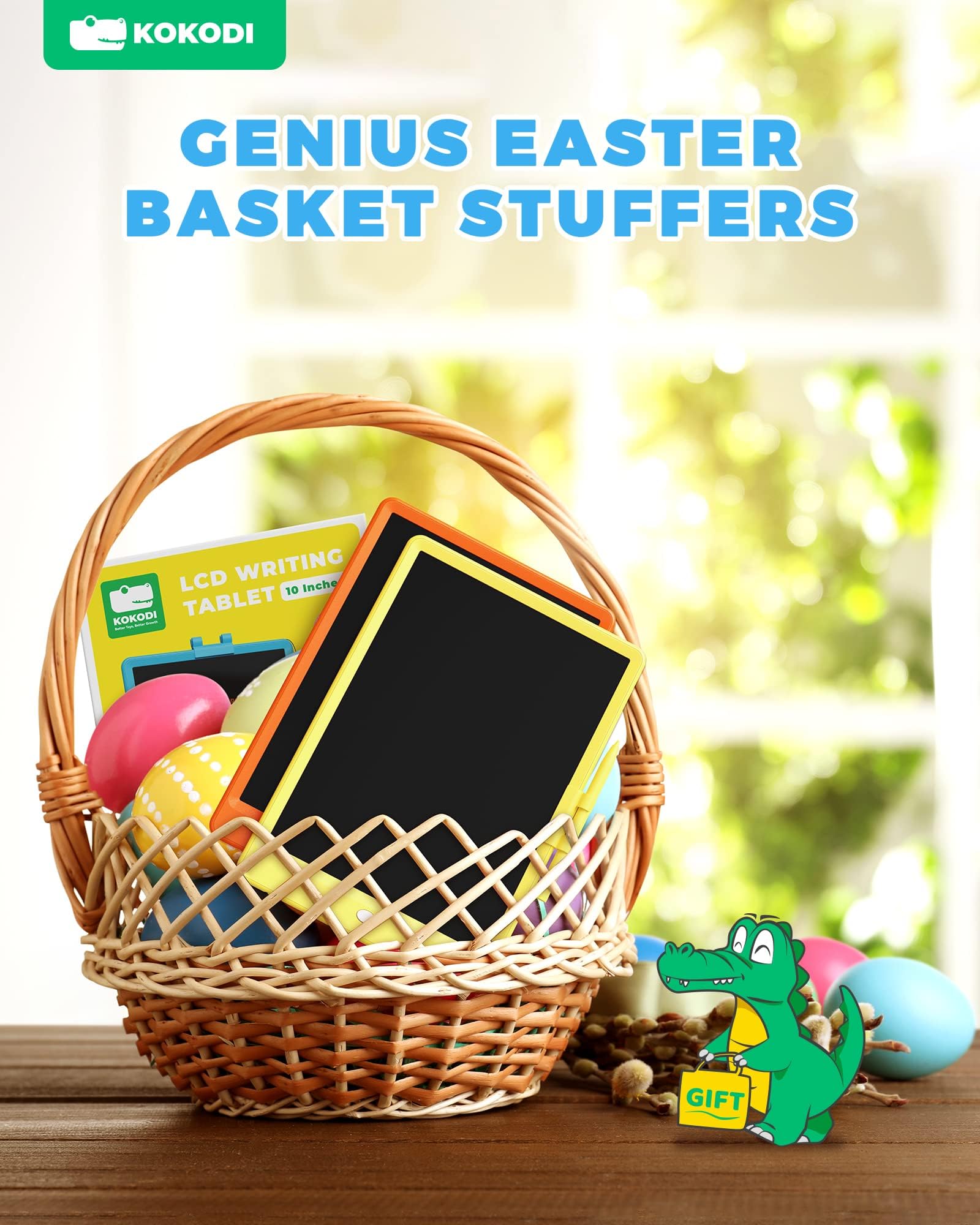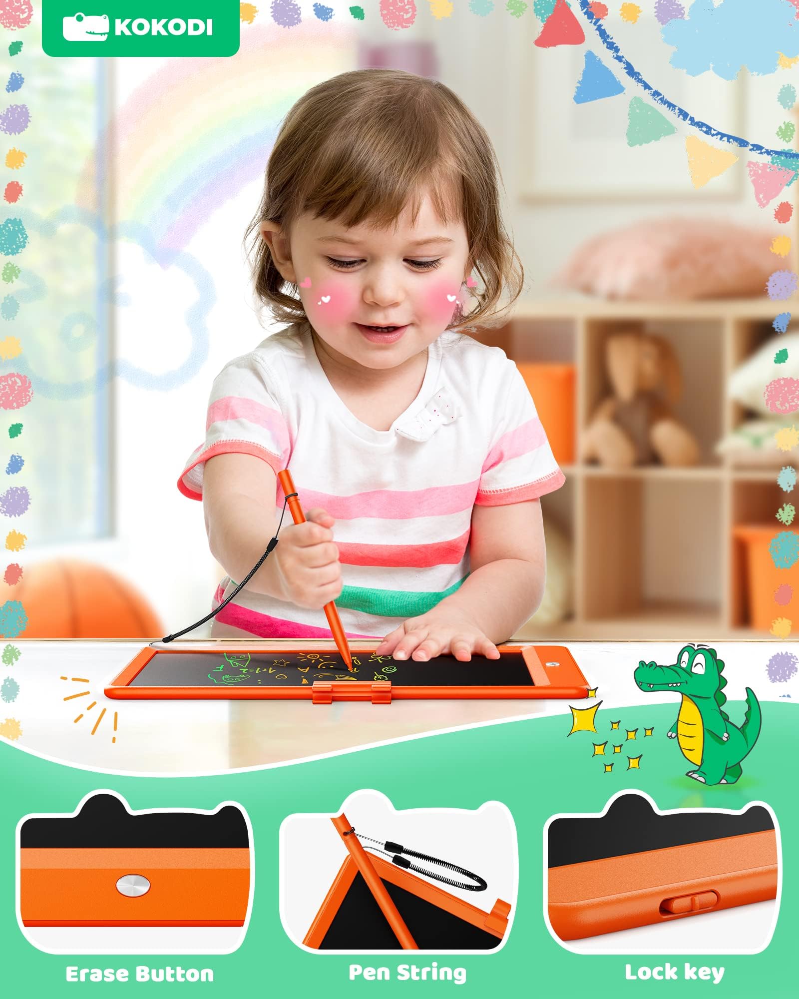 KOKODI LCD כתיבה לוח, 10 אינץ' צבעוני לוח ציור לוח שרבוטים, מחיק רב פעמי אלקטרוני ציור כריות, חינוכי ולמידה עבור בנים ובנות בני 3-6 שנים