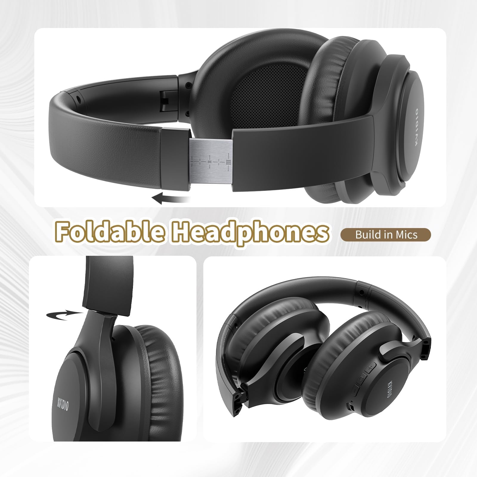 אוזניות Bluetooth KVIDIO מעל האוזן, 65 שעות נגינה אוזניות אלחוטיות עם מיקרופון, אוזניות מתקפלות קלות משקל עם בס עמוק, צליל סטריאו HiFi השהיה נמוכה לנסיעות עבודה נייד