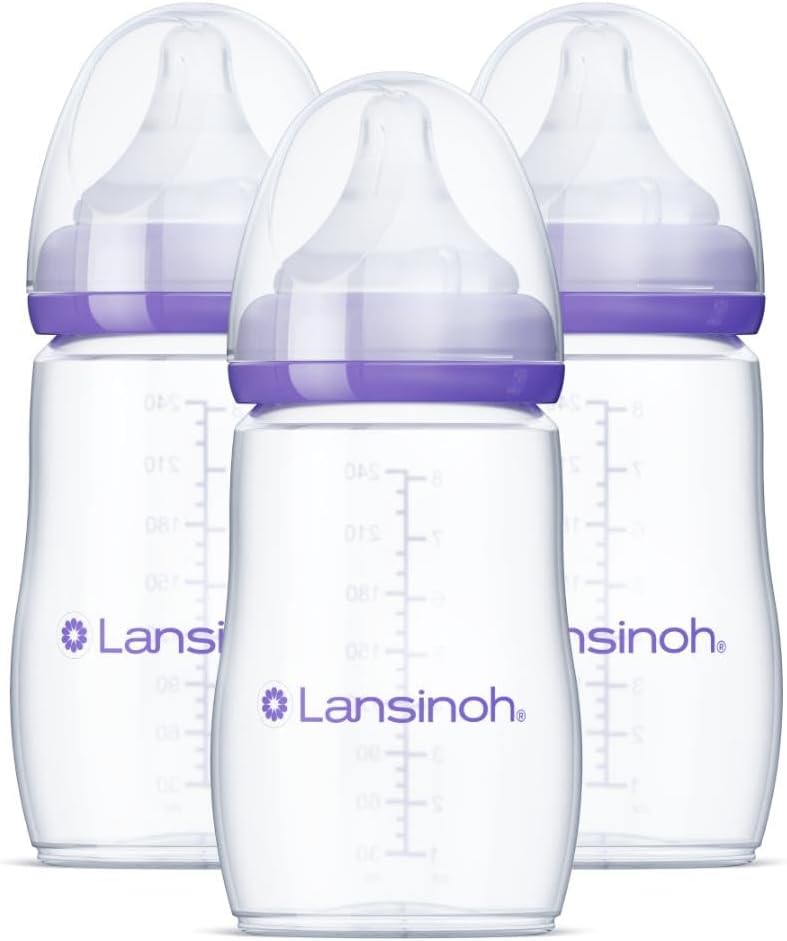 בקבוקי תינוקות Lansinoh נגד כאבי בטן לתינוקות מניקים, 225 מ"ל, 3 יחידות, כולל 3 פטמות זרימה בינונית, מידה M
