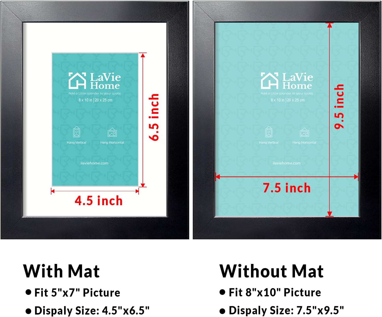 מסגרת תמונה LaVie Home 8x10, מסגרת תצוגה לתמונות 8x10 5x7 עם שטיחון או 8x10 בלי שטיחון, מסגרת שחורה יציבה וחזקה ופרספקס מלוטש, פורמט אופקי ואנכי של הקירות, יחידה אחת