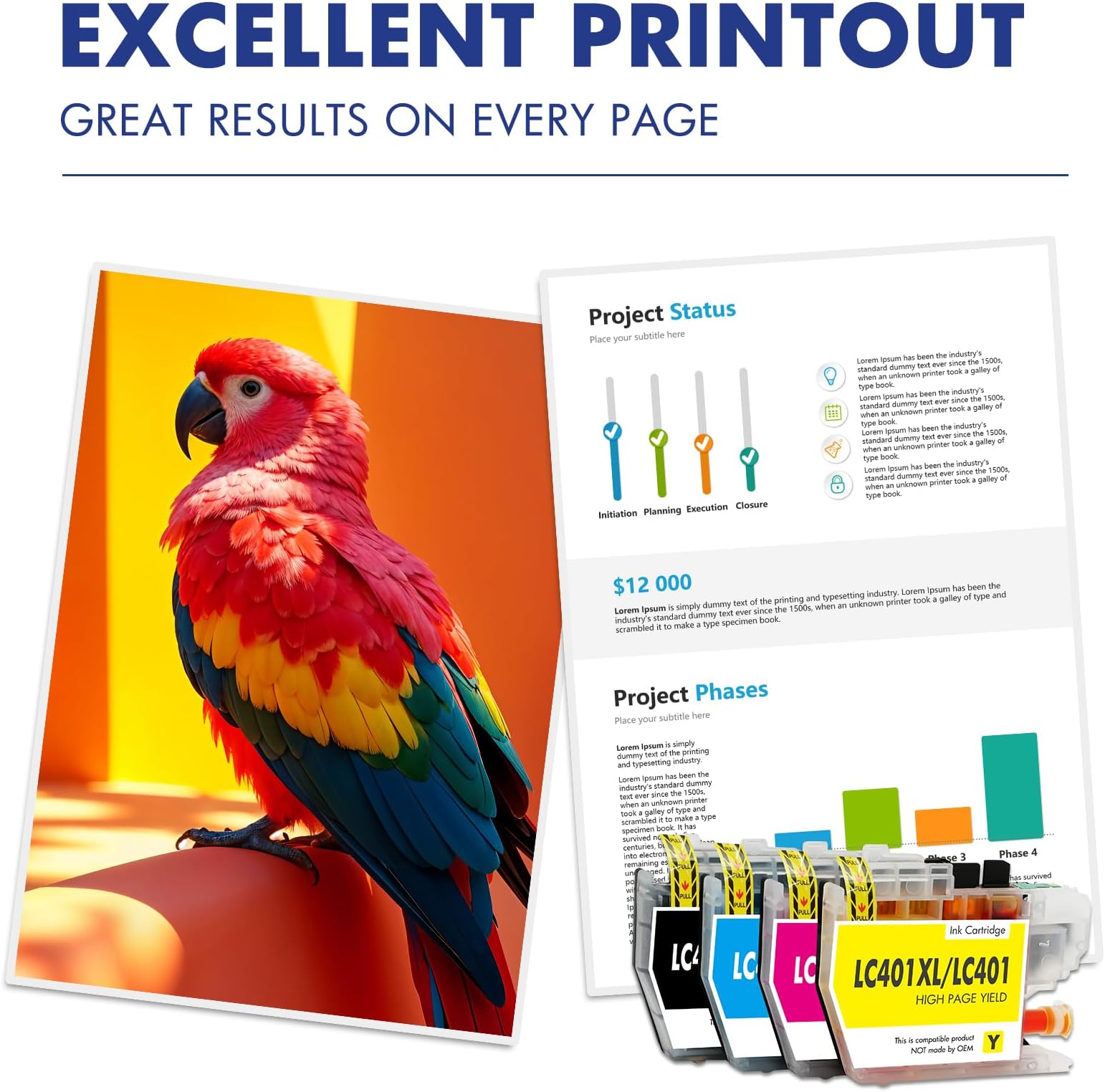 - תפוקת עמודים גבוהה: תפוקות גבוהות של עד 500 עמודים למחסנית דיו LC401XL (כיסוי של 5% * גודל נייר A4)