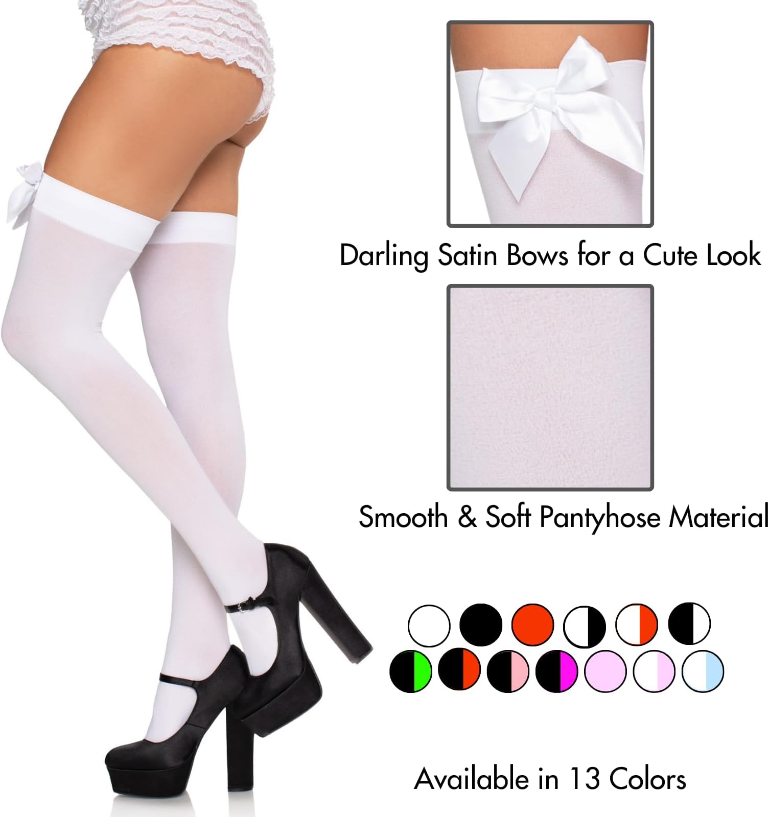 נעלי ירכיים עם קשת סאטן לנשים של Leg Avenue, גזרה עליונה, לבן