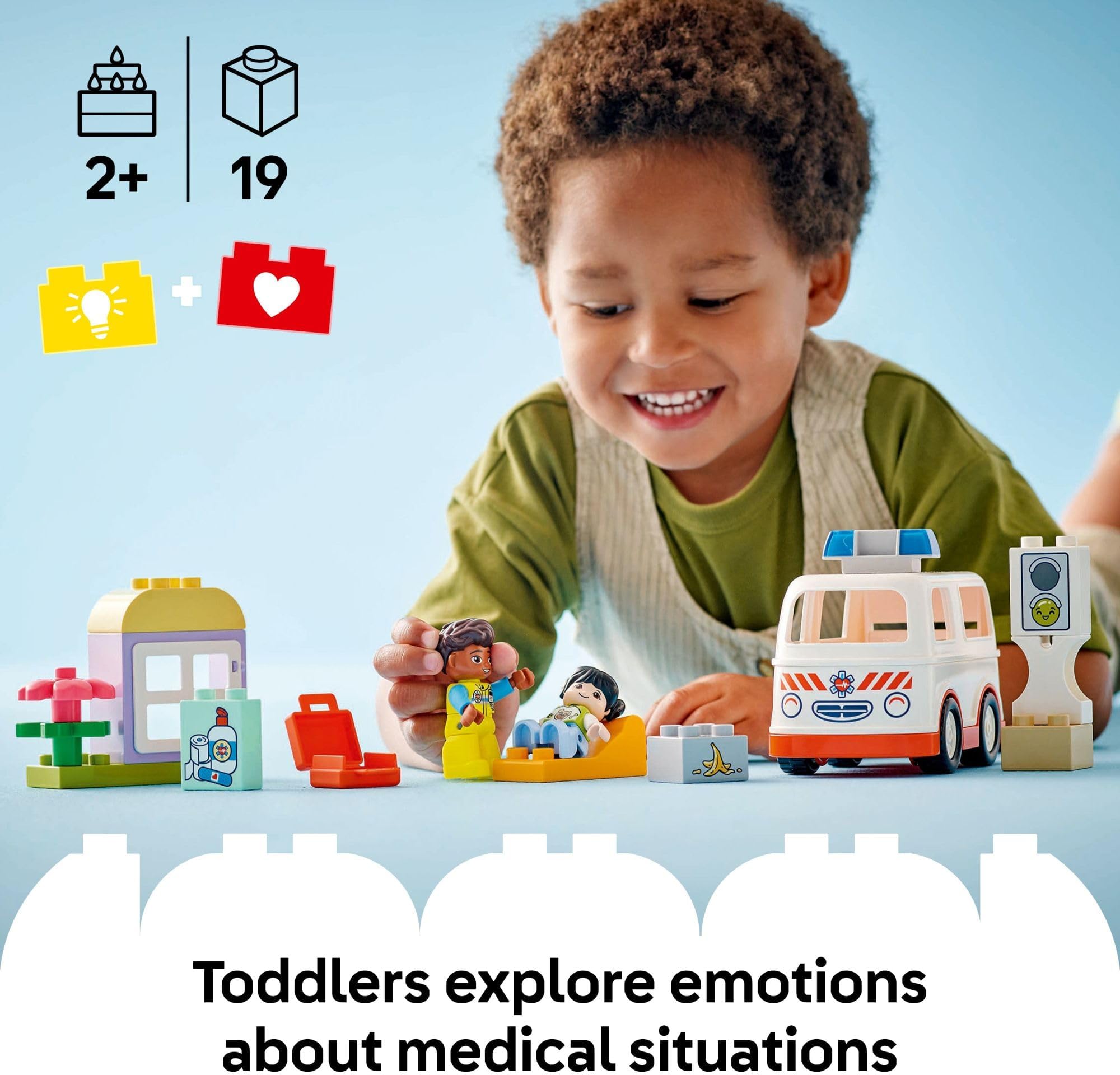 LEGO DUPLO Town Ambulance & Driver Building Toy Playset - Preschool Learning and Educational Ambulance Toy for Toddlers, Boys and Girls, Ages 2+ - Pretend Play Baby Gift Idea - 10447