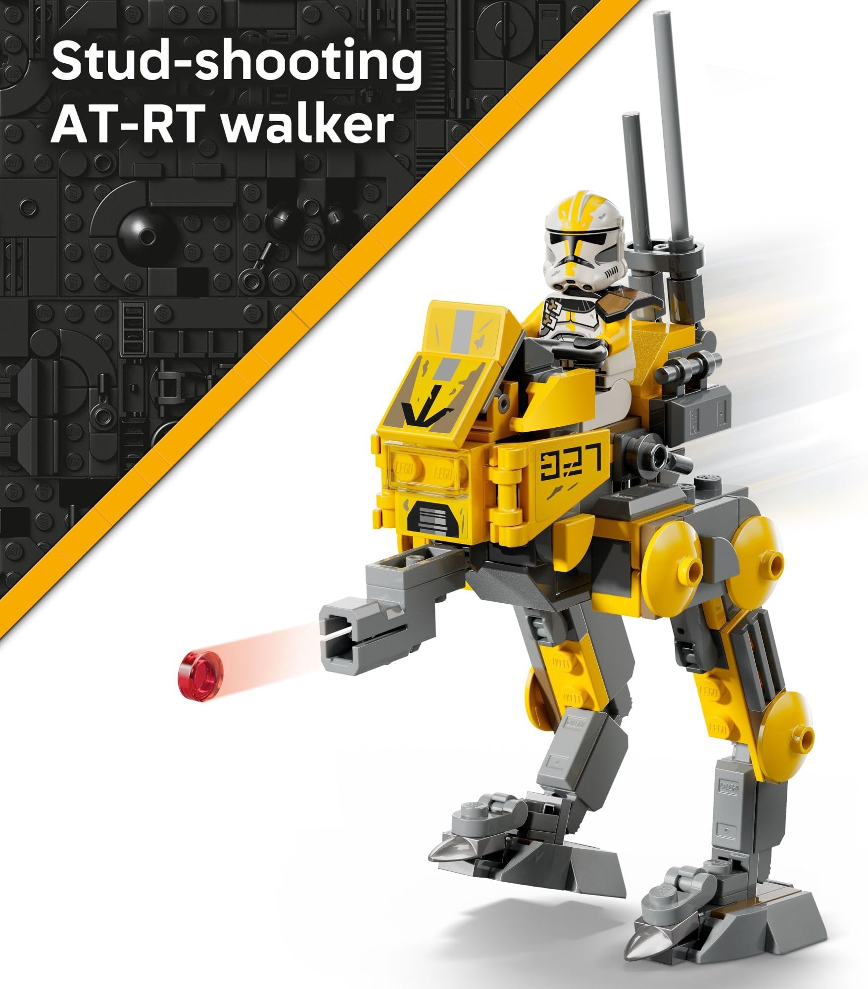 - BUILT FOR STAR WARS BATTLES – Kids can command an AT-RT walker with a LEGO minifigure cockpit, a stud shooter, and storage for a blaster and binoculars, as well as posable Spider Droid and stud-shooter turret